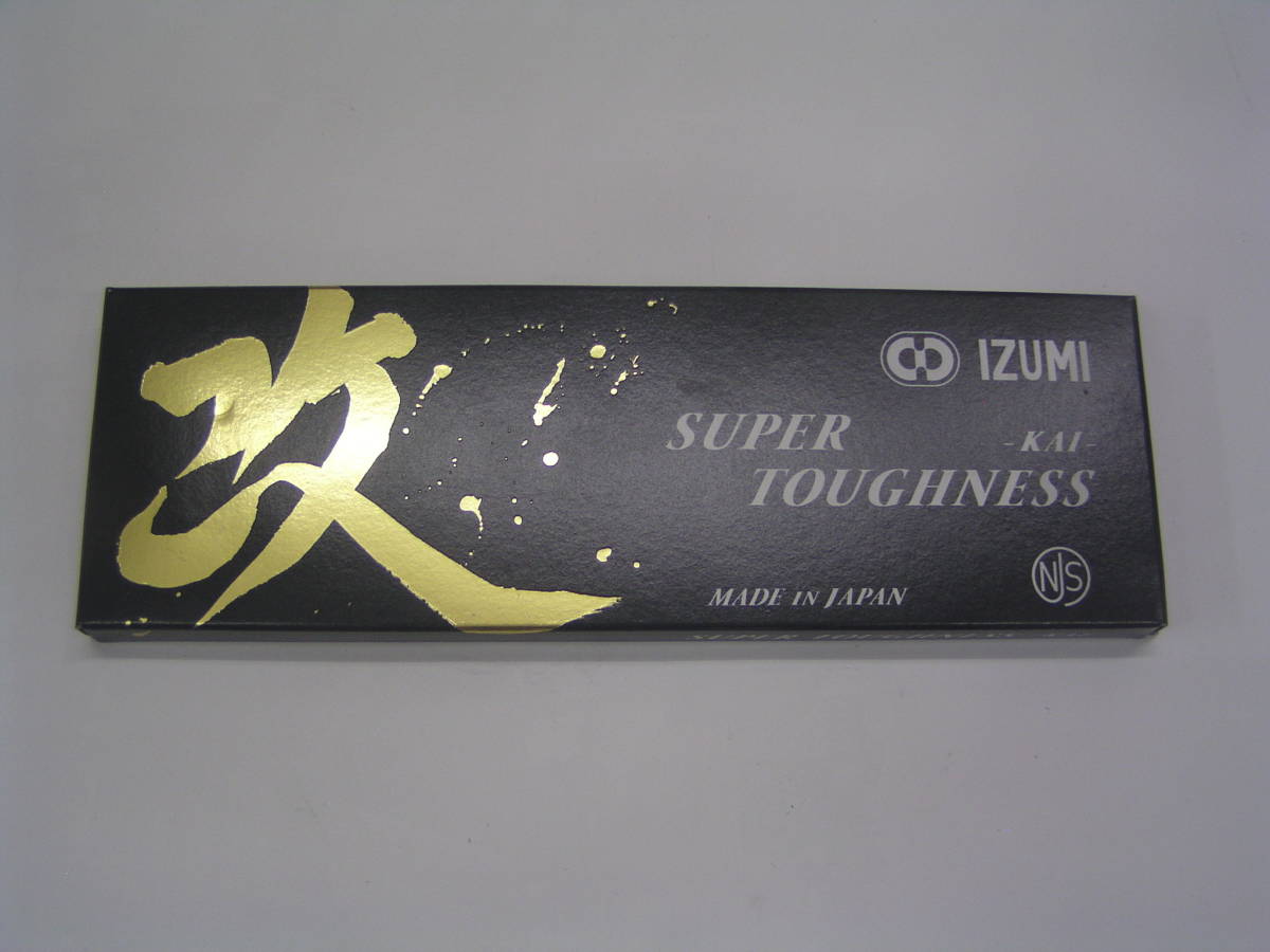 IZUMIのハイエンドチェーン スーパータフネス KAI 1/2×1/8 106L 新品です。NJS認定品です。チェーンコネクトピンはねじ式です。箱は紙製ですので多少の傷み、シワ、チェーンの油しみ等はご容赦ください。送料はクロネコヤマト宅急便元払いで北東北(青森、秋田、岩手)¥860、南東北(宮城、山形、福島)送料¥750、関東、信越、九州¥630、中部、北陸、関西、四国、中国¥520です。レターパックプラス(破損補償なし)送料¥600、レターパックライト(破損補償なし、簡易包装、ポストイン)送料¥430での発送も可能です。それでは、よろしくお願いいたします。