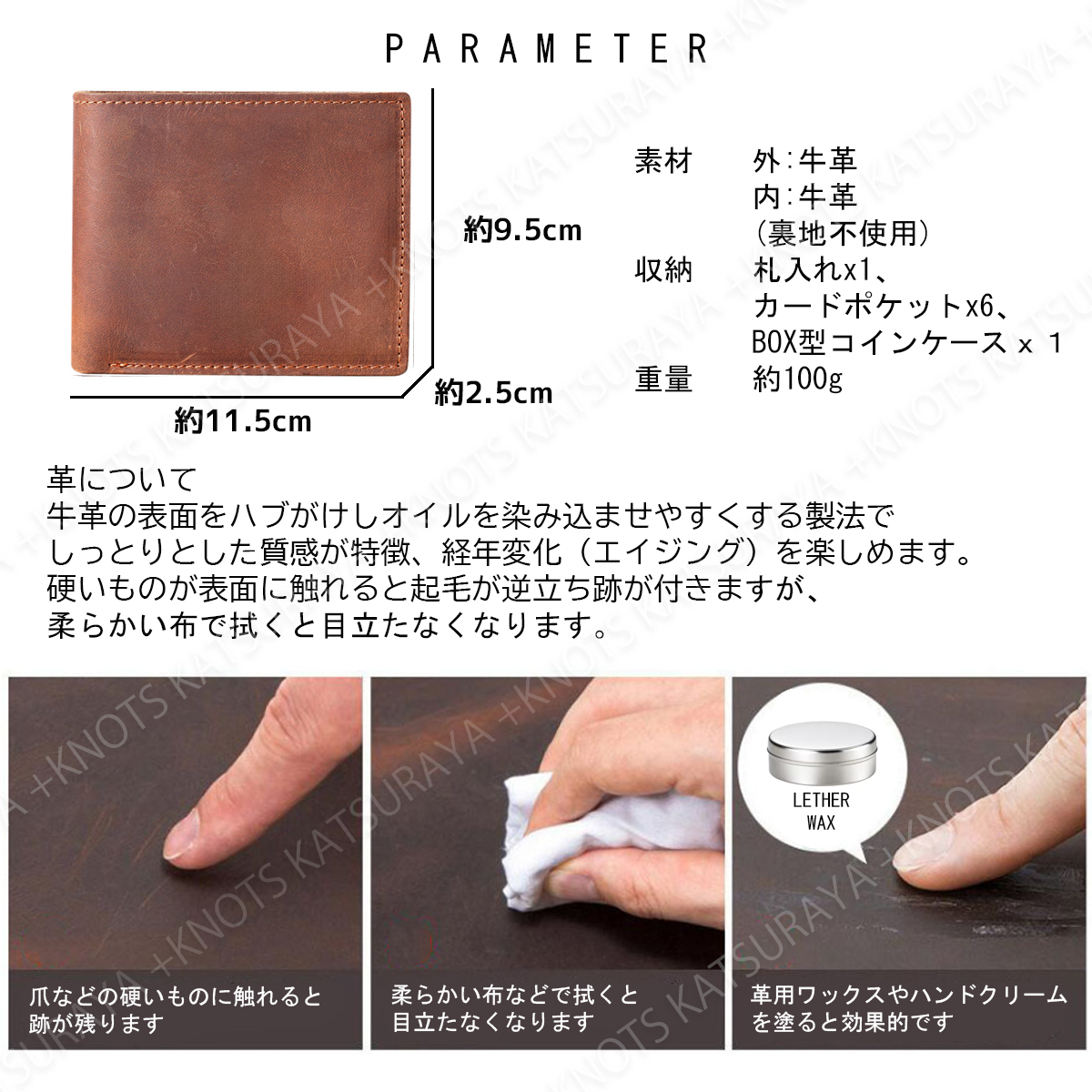 本革 メンズ 二つ折り財布 ボックス型小銭入れ付き