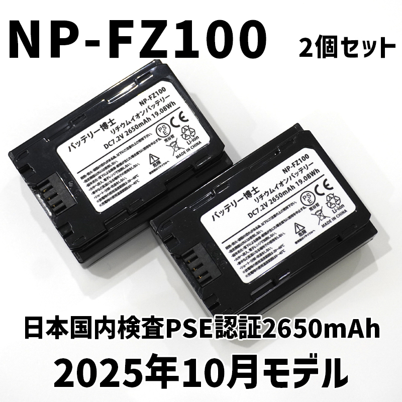 PSE認証2025年10月モデルNP-FZ100 互換バッテリー2個になります。