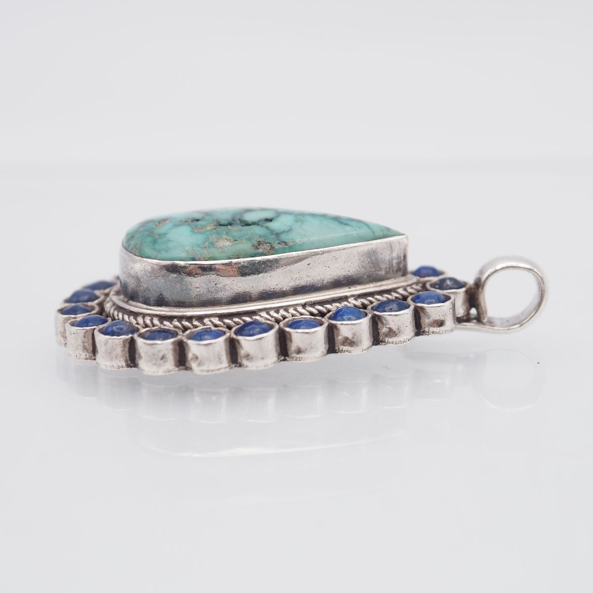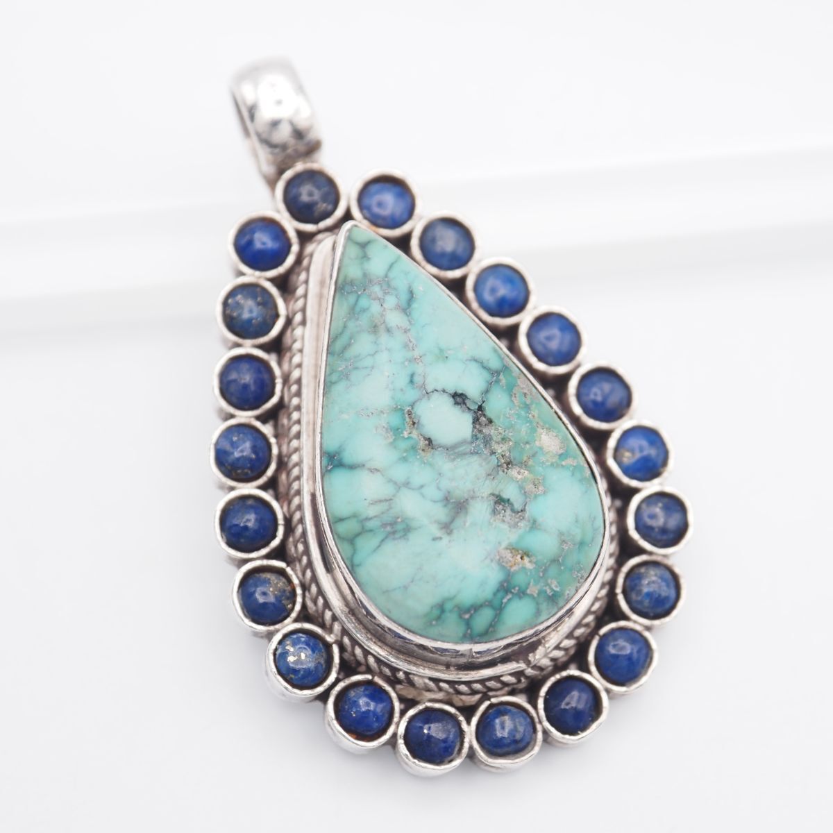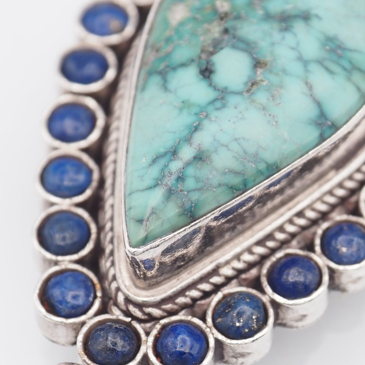 G386 ターコイズ トルコ石 ラピスラズリ ペンダント トップ デザイン シルバー チャーム ヘッド ヴィンテージ 12月誕生石
