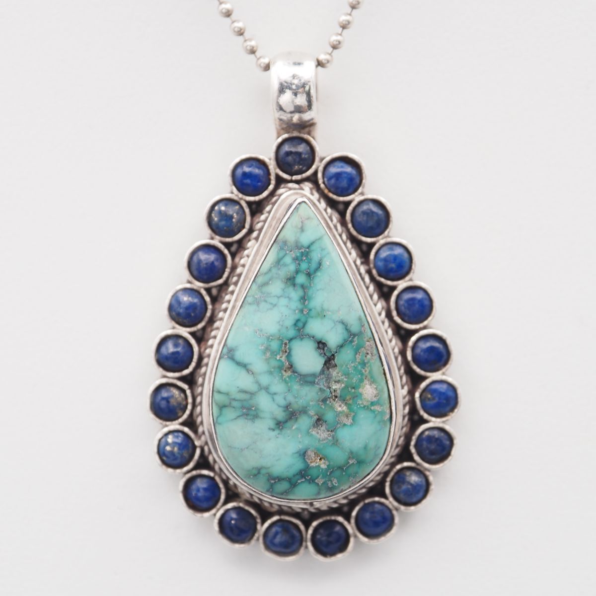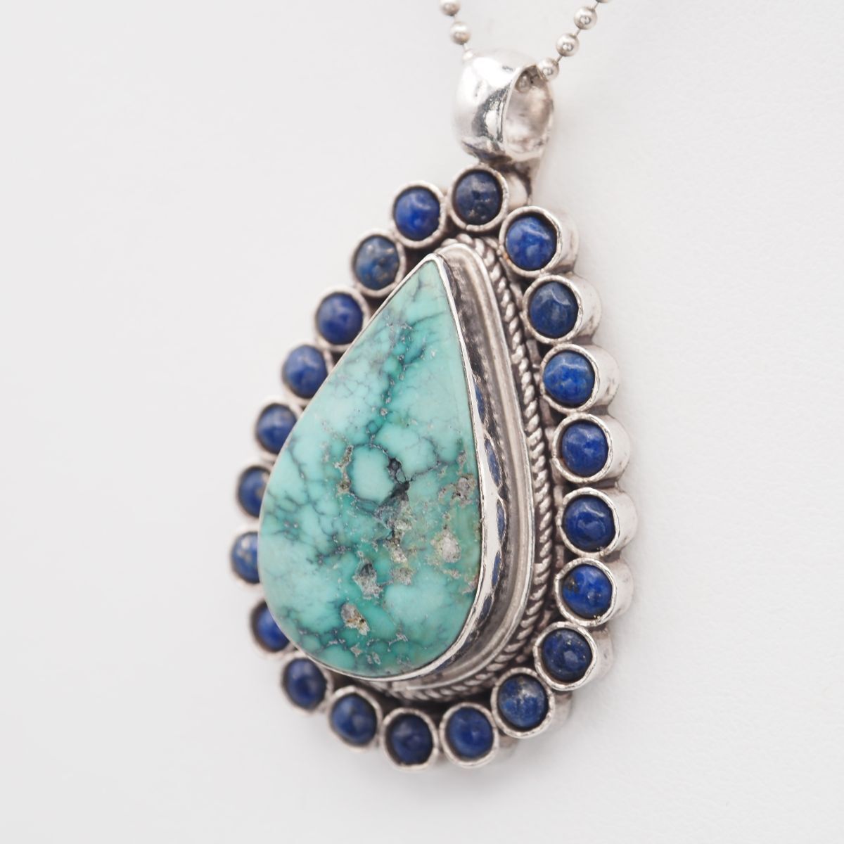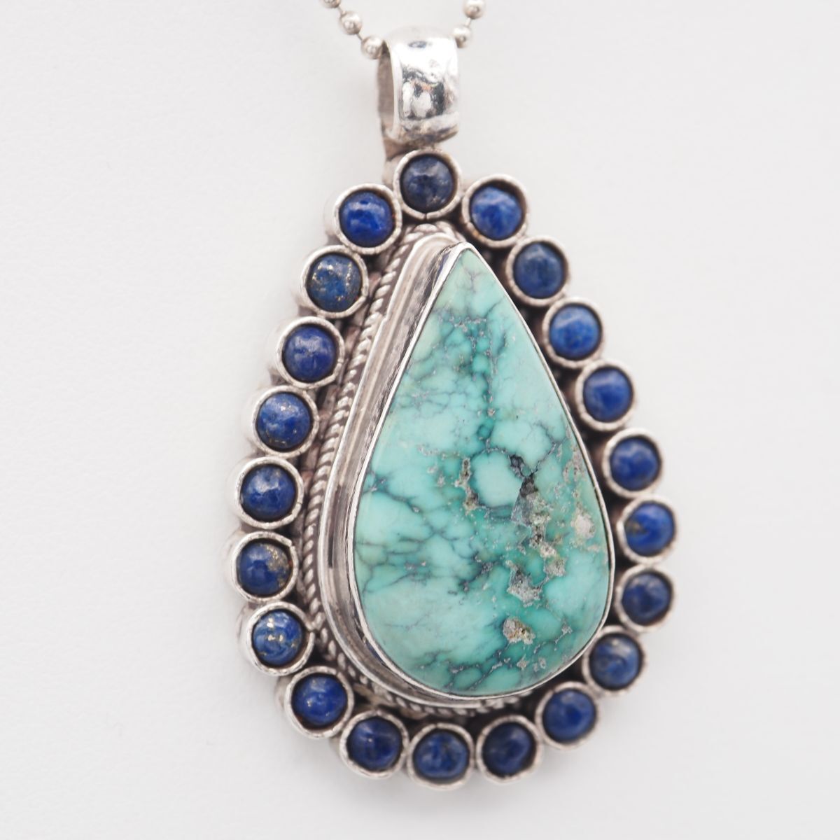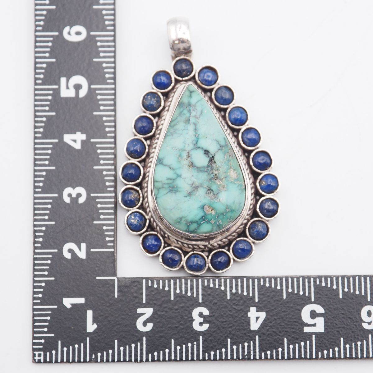 G386 ターコイズ トルコ石 ラピスラズリ ペンダント トップ デザイン シルバー チャーム ヘッド ヴィンテージ 12月誕生石