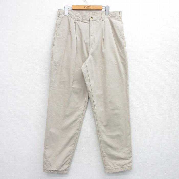 【商品名】 W34★古着 エルエルビーン パンツ メンズ 90年代 90s コットン USA製 ベージュ 内側フランネル【spe】