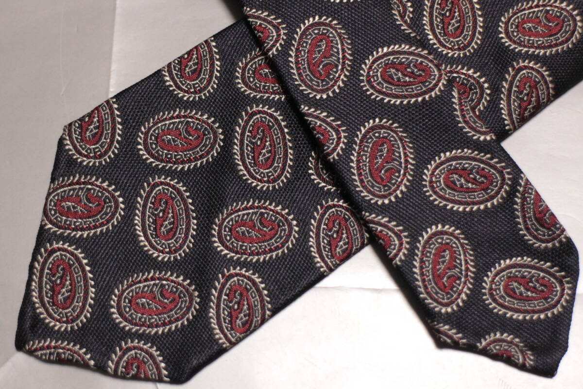 アットヴァンヌッチ*トゥモローランド別注新品ネクタイ超シック華麗ネイビー*シルバー*ワインレッドメダリオン小紋極上セッテェピエゲ