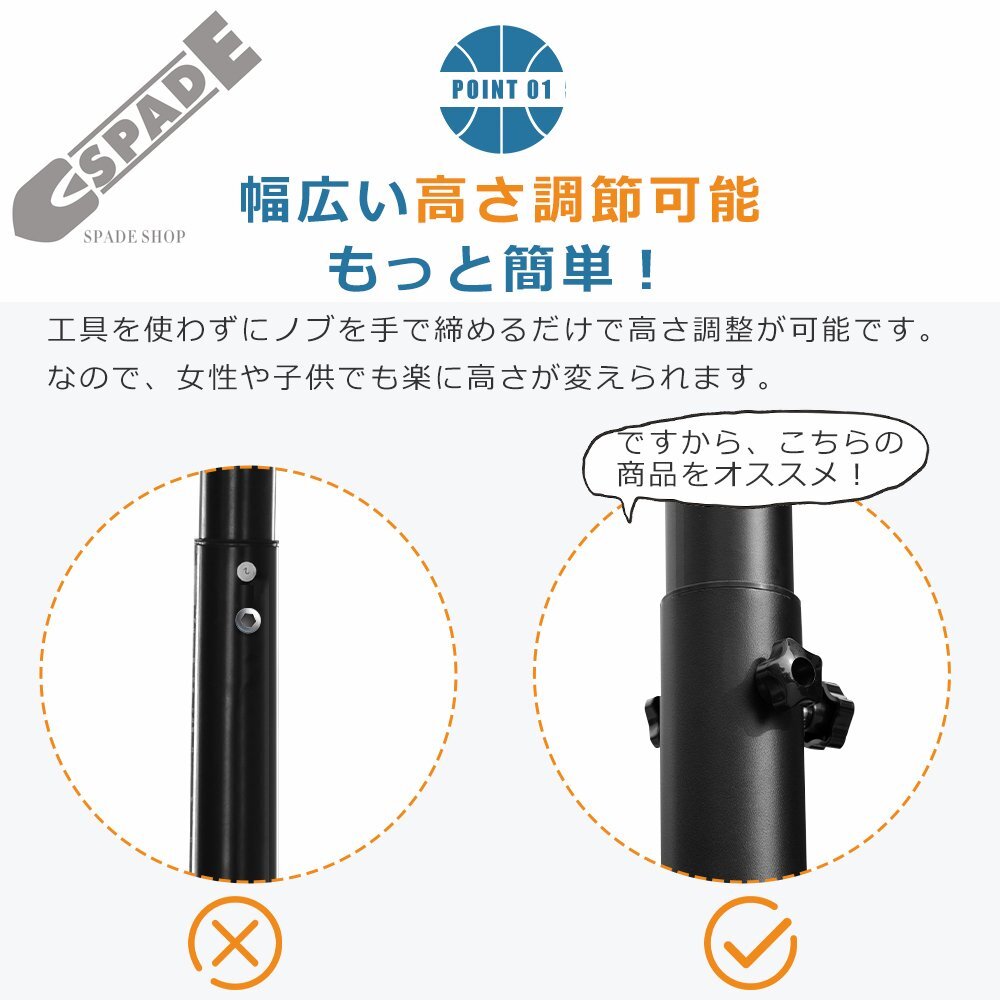 • 【幅広い高さ調節可能 もっと簡単! 】工具を使わずにノブを手で締めるだけで高さ調整が可能です。 なので、女性や子供でも楽に高さが変えられます。2.30から3.05mまで調節可能で、ミニバスから公式試合まで幅広い高さを、お好みで。
