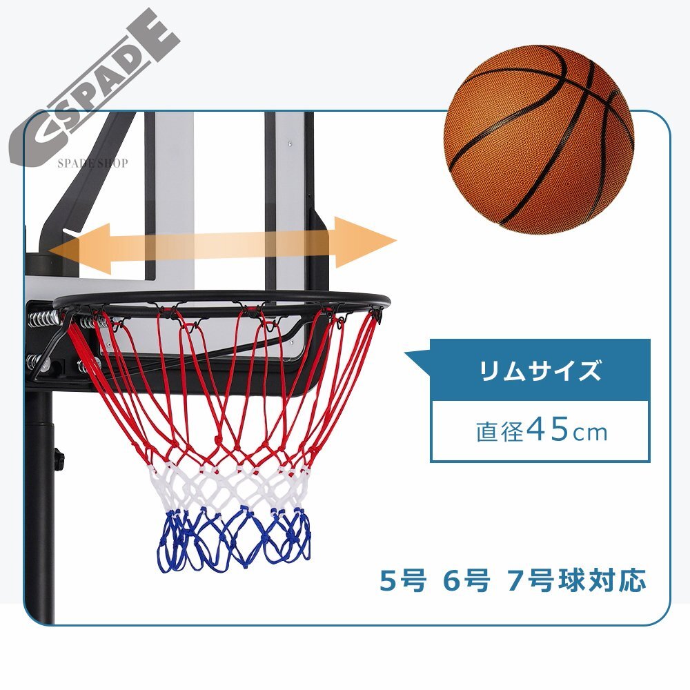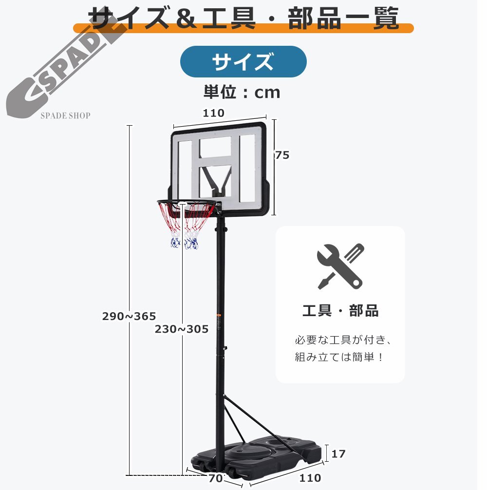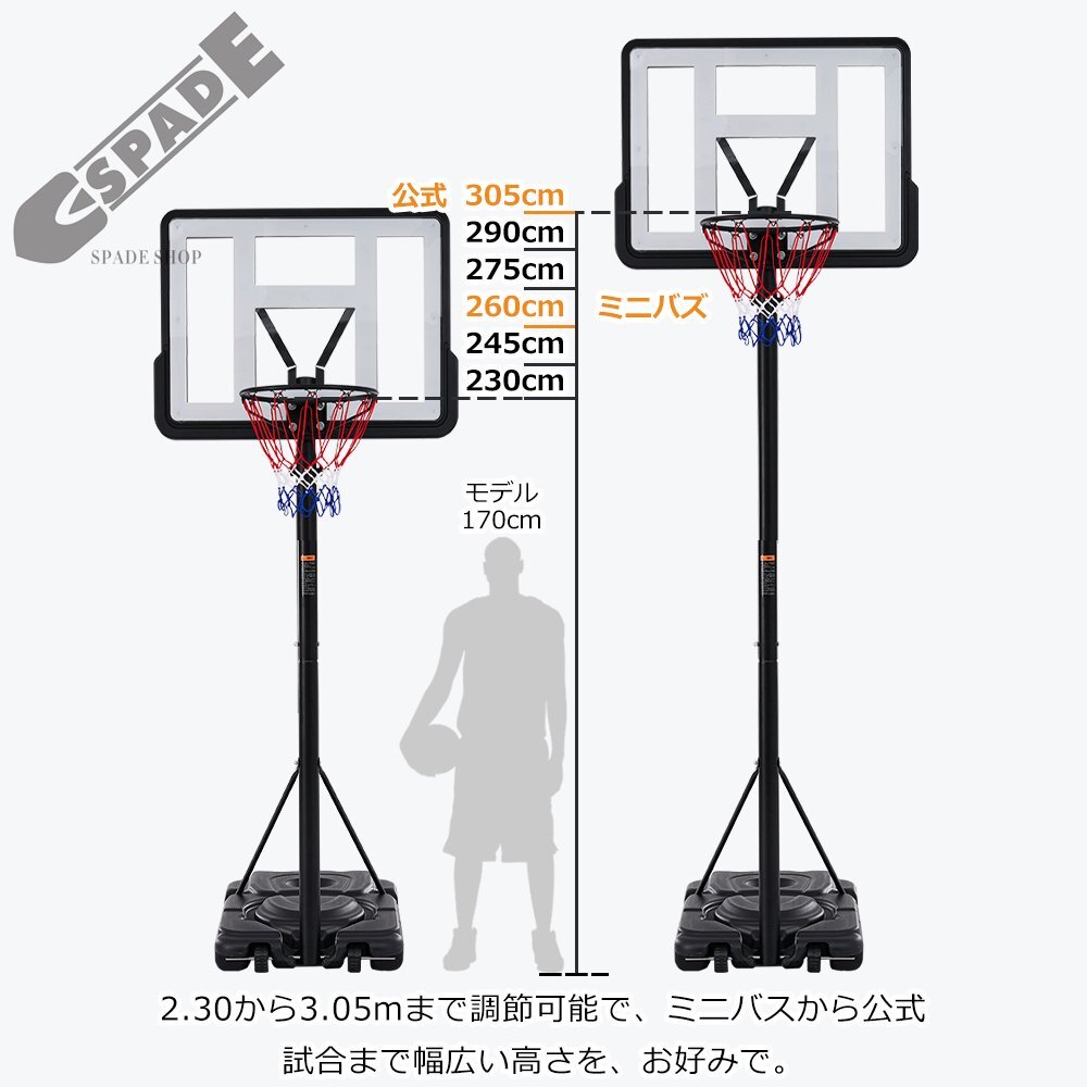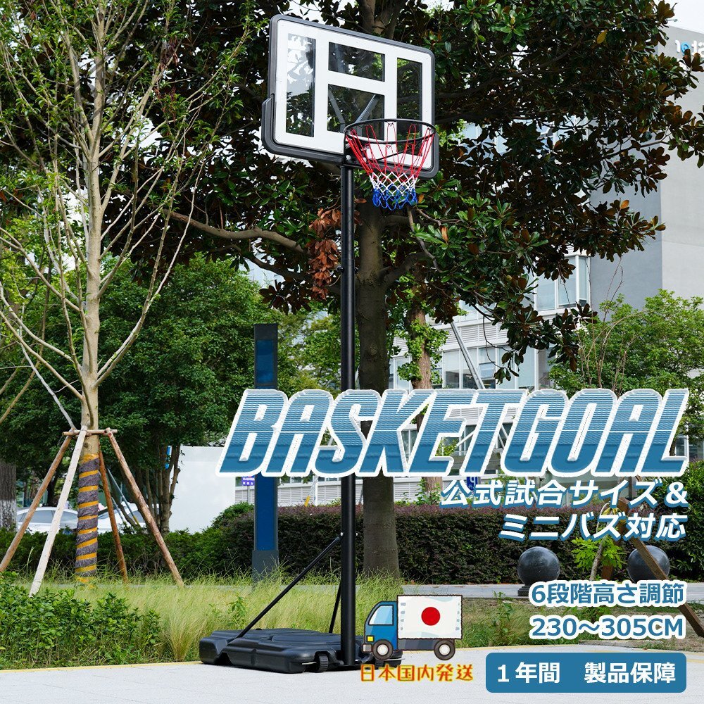【国内発送】バスケットゴール 公式&ミニバス対応 6段階高さ調節 230-305cm 移動可 工具付き ゴールネット 一般用 屋外用