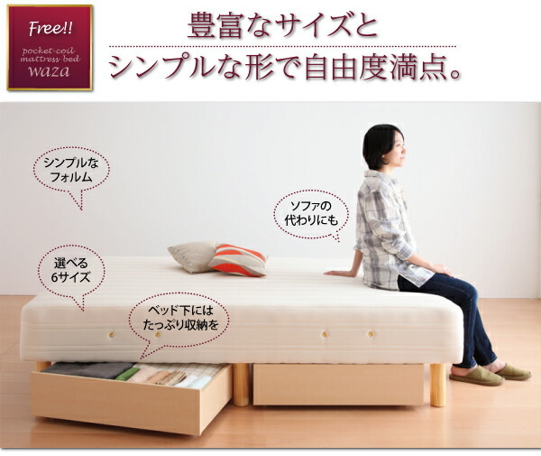 新・国産ポケットコイルマットレスベッド Waza ワザ マットレスベッド かため:線径2.0mm セミダブル 脚15cm【マットレスカラー:アイボリー】です。