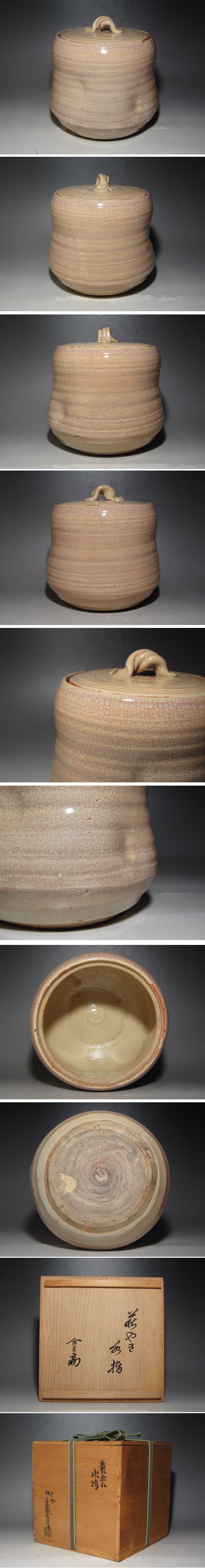 十代坂高麗左衛門作の萩焼水指です。 温かみのある姿の風格ある作品です。 箱蓋裏に裏千家十四世淡々斎の花押があります。 サイズ 直径16.5cm/高さ16.5cm(多少の誤差はお許しください) 状態 一見して疵やヒビ・直しは見られません。 骨董品という事をご勘案頂き、時代経過のスレや、小さな傷がある場合があるかもしれませんのでご承知置きください。 | |||