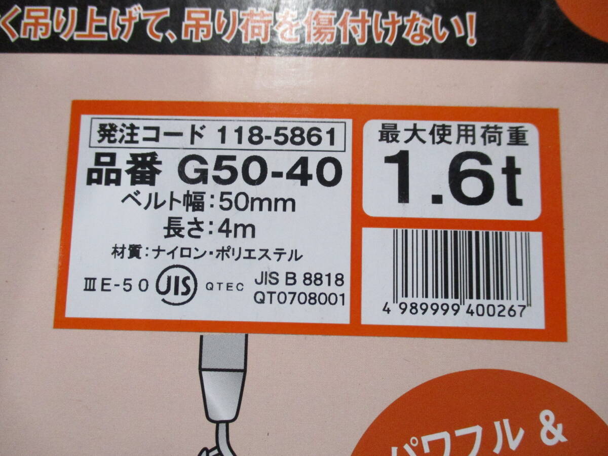 未使用 ② TRUSCO ベルトスリング 1本入 G50-40 1.6t トラスコ中山 JIS3等級 外箱汚れ傷シミあり 激安1円スタート