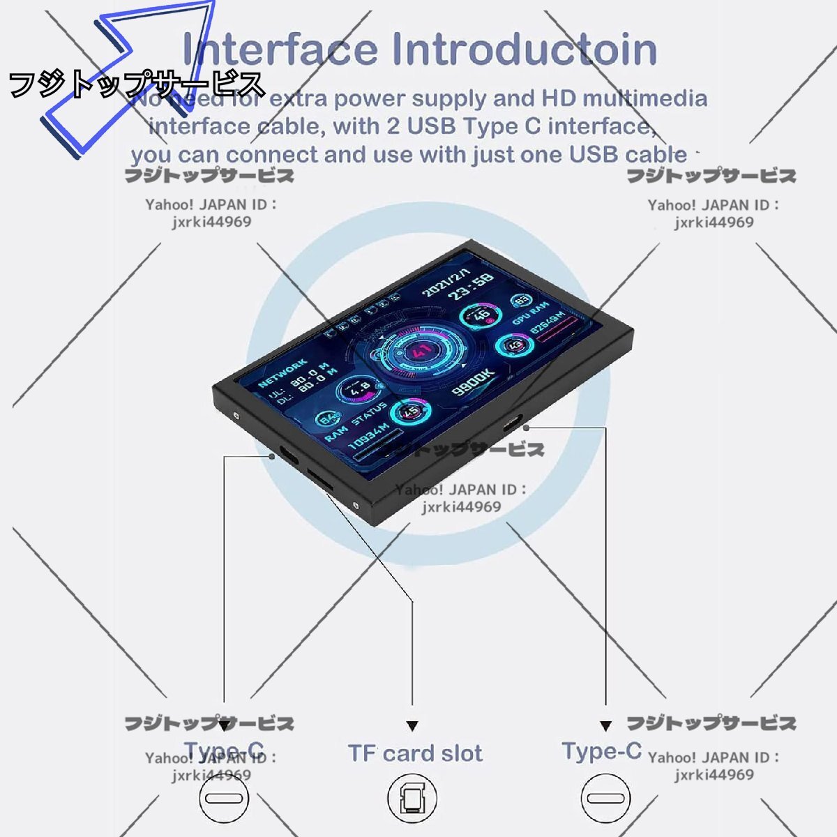 CPUモニター、5インチIPSスクリーンディスプレイハードウェア温度モニター、ポータブルUSB TYPE C PC CPU RAM HDDデータモニター、スクリー