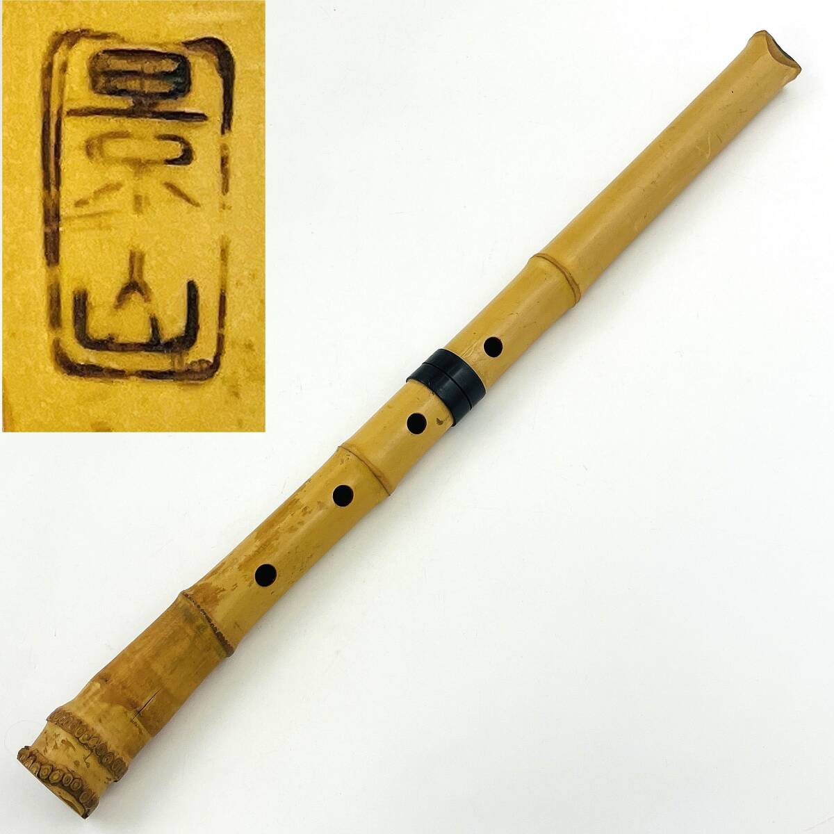 尺八 景山銘 55cm 重量245g 結合緩い 割れl箇所あり 現状品 和楽器 竹製 管楽器 ①