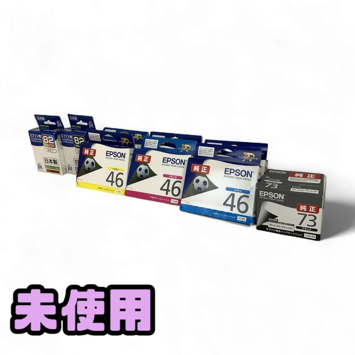 | 商品内容 ・EPSON ブラック 73 ICBK73 ・EPSON 46 シアン ICC46 ×2点 ・EPSON 46 マゼンタ ICM46 ×2点 ・EPSON 46 イエロー ICY46 ×2点 ・JIT EPSON用 ブラック 82 リサイクル JIT-AE82B ・JIT EPSON用 カラー 82 リサイクル JIT-AE82C 推奨使用期限が切れているものがあります。 写真でご確認ください。 | ||||||||||||||||||||