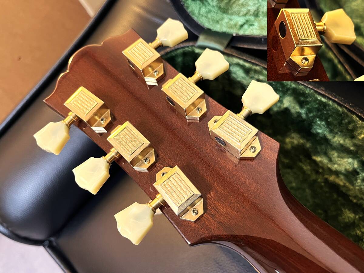 | ・・・ボディ全体の艶はキープされており、ペグ/ゴールドカバーともに新品の如く美しく輝いています |