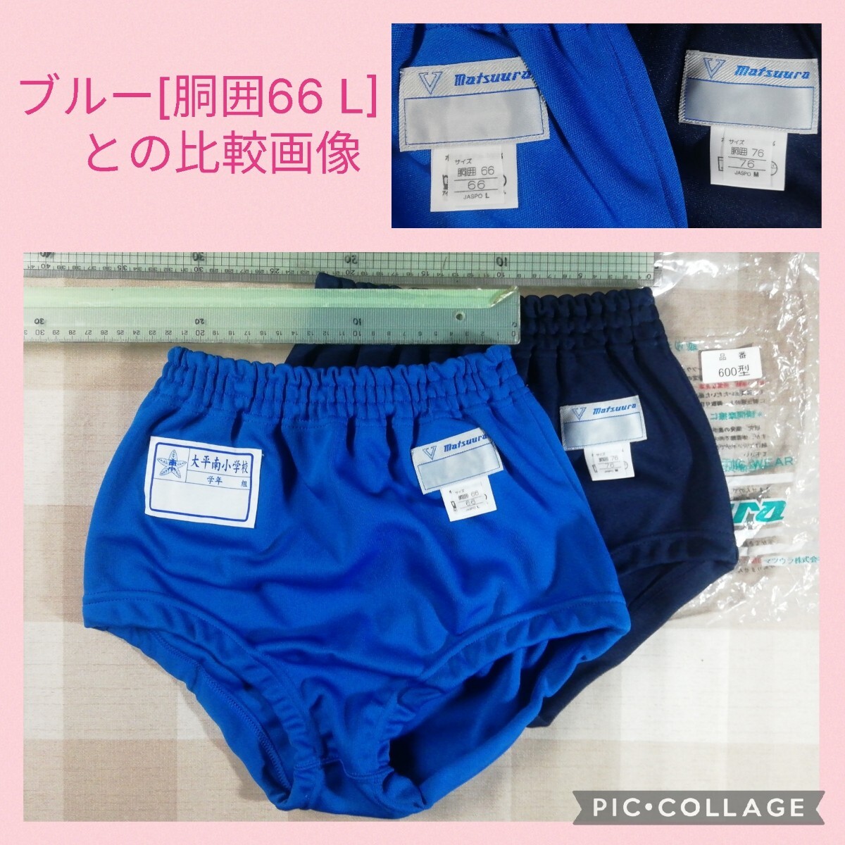 ▼[胴囲 76 M ]のタグ表記ですが、ブルー[胴囲66 L ]と合わせましたら ほぼ同等の大きさでした。