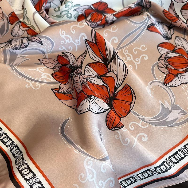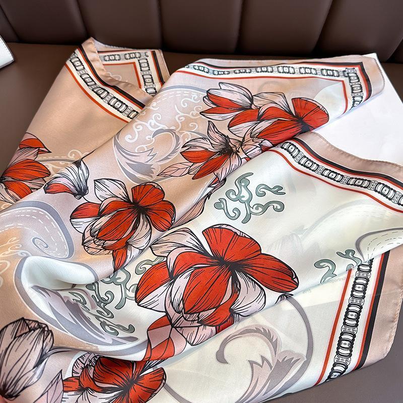 【C-81】新品 レディース 正方形70cm スカーフ巻き方 首元 おしゃれ 飾り 春夏 シルク調 ストールバックスカーフ