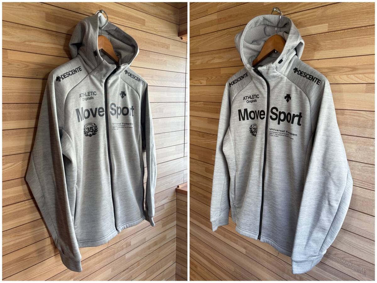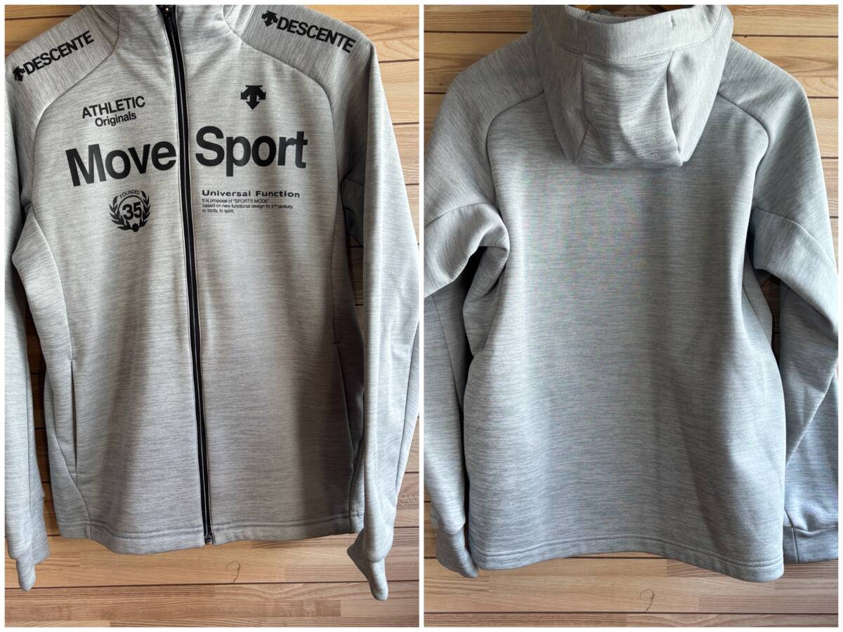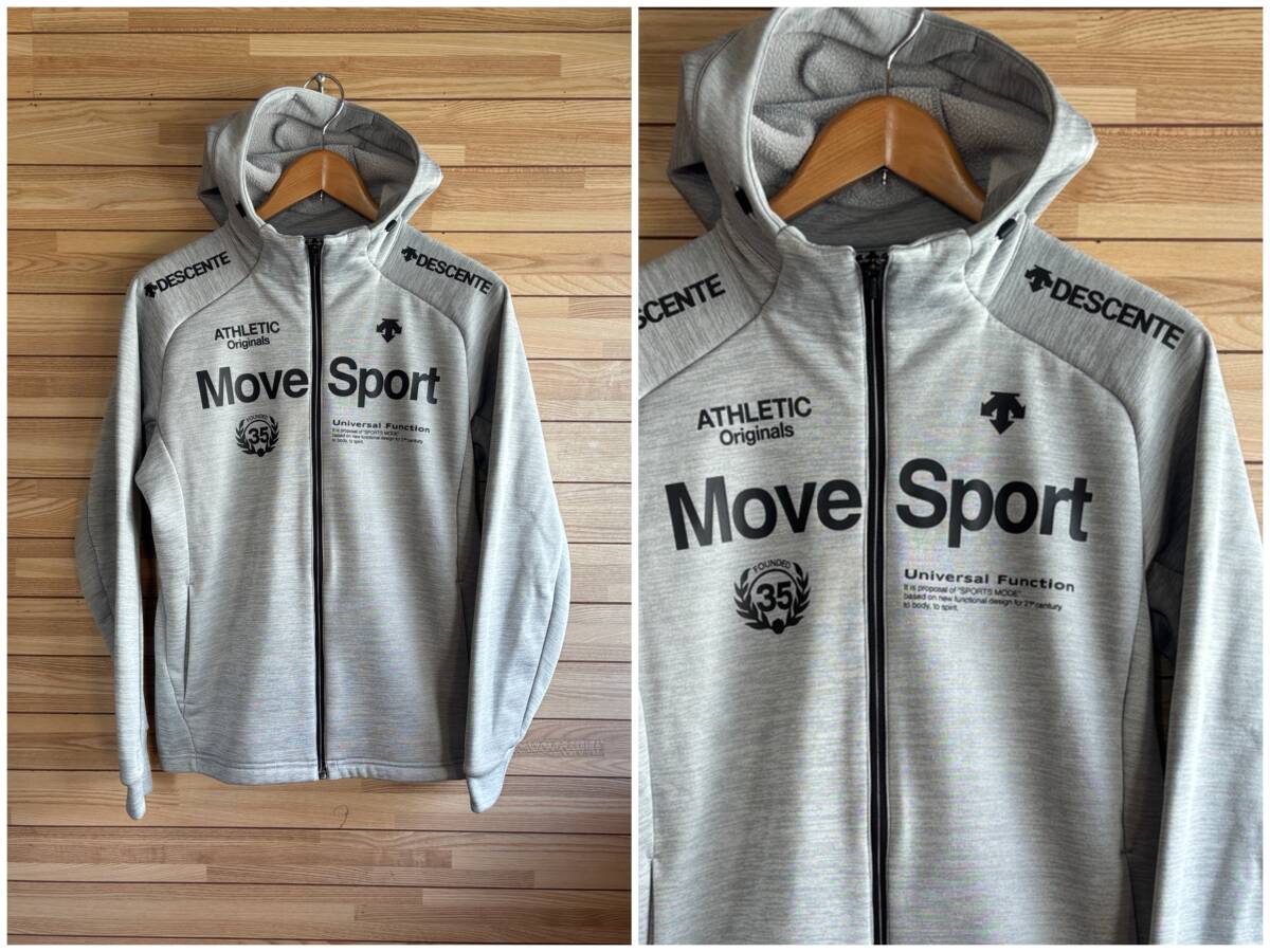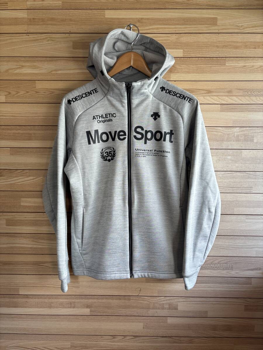 セール★サイズ M★DESCENTE デサント MOVE SPORT ムーブスポーツ 光発熱 +5℃ 裏起毛 保温 スウェット パーカー フード ジップ グレー