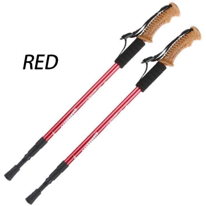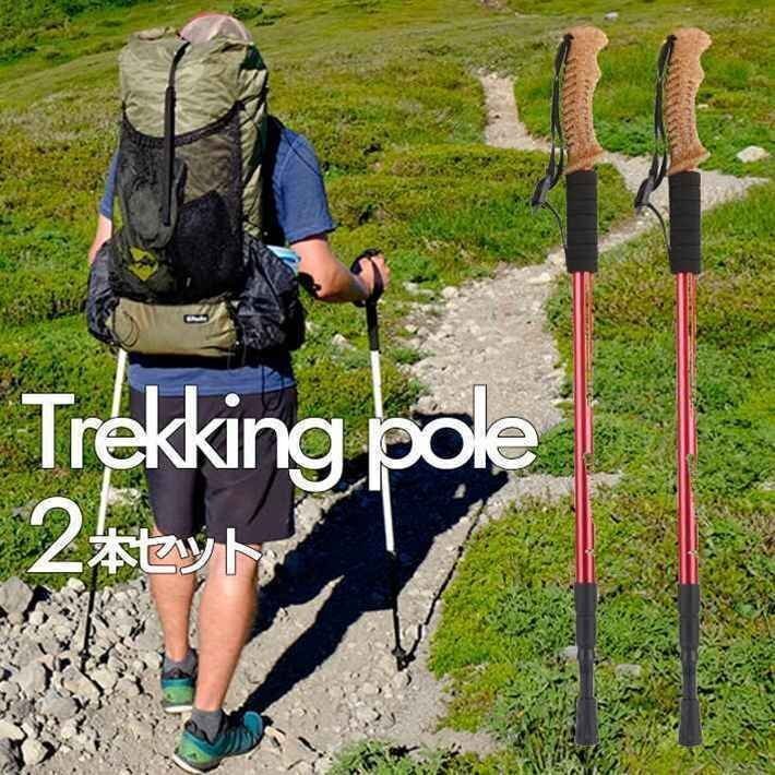 【2本セット】トレッキングポール アルミ製 トレッキングステッキ 登山杖 キャンプ アウトドア 散歩 7988253 レッド 新品
