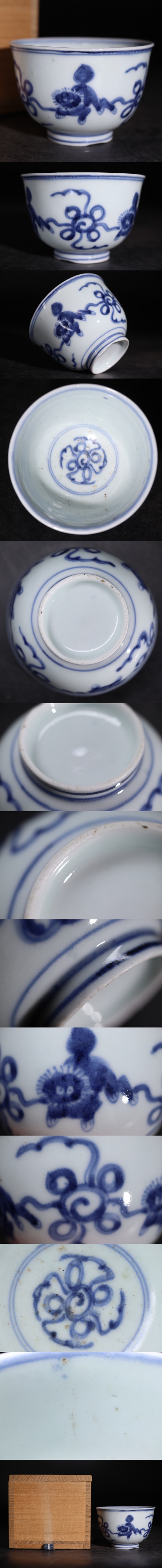 | 時代 染付 獅子文 煎茶碗 木箱付 / 中国美術 清 新渡 茶器 煎茶道具 煎茶飾 .G3484 |