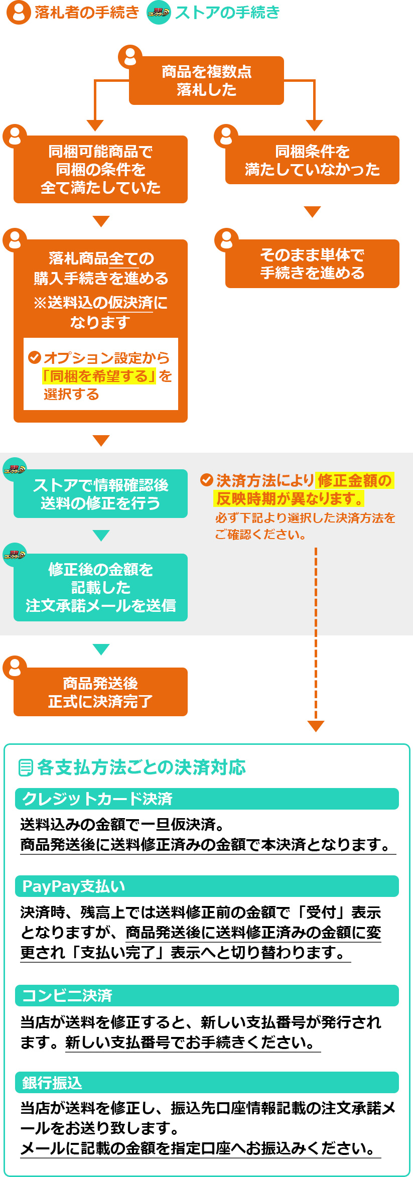 ※落札した商品により、お支払い方法が限定される場合がございます。ご利用頂ける方法については「お支払い方法」の項目をご確認ください。 |