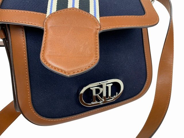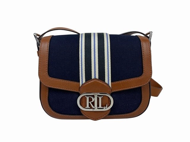| RALPH LAUREN / ラルフ・ローレン ショルダーバッグ キャンバス レザー レディース ネイビー/ブラウン | ||||||||||||||||||||||||