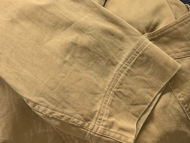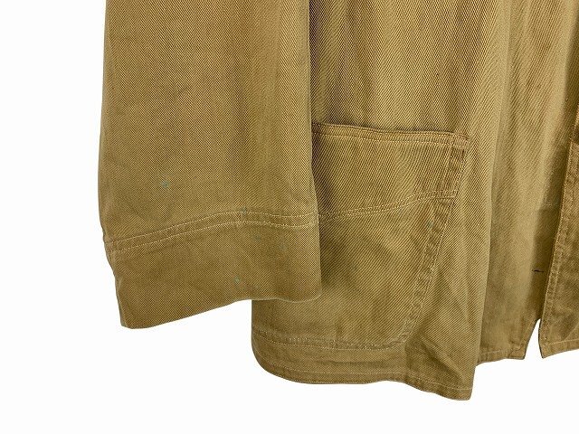 | 経年品で全体的に汚れやシミがあります。左胸ポケットと袖口にほつれがあります。写真にてご確認ください。 ※ 状態は、弊社基準により表記をさせて頂いております。 ※ リユース商品の為、表示しきれないダメージなどある場合もございます。 ※ 実店舗業務の運営上、質問にお時間をいただく場合や主観的なご質問にはお答えできかねる場合がございます。 サイズ | | 【肩幅】 : 50cm 【身幅】 : 56cm 【着丈】 : 66cm 【袖丈】 : 56cm すべて平置きでの採寸となっております。 素人採寸ですので、ご参考程度にお願いします。 付属品 | ※ 出品商品はお写真に写るものが全てとなります。 | ※ ハンガー・スタンド等、備品を用いて撮影している場合がございますが、備品は付属いたしません。 店舗名 | 朝日店 | 発送について | ゆうパック、もしくは 佐川急便、ヤマト運輸(選択は出来ません) 元払のみの発送です。管理上その他の発送方法には、対応できません。お問い合わせは、ご遠慮願います。 | お支払いについて | 落札金額 + 消費税 + 送料 のお支払いとなります。 | 送料は送料欄にて、お届け先の都道府県をご選択頂き確認をお願い致します。 ※ 離島など別途追加が必要な場合もございます。 ※【お支払方法】銀行振込・代引きには対応しておりません。 同梱について | ※ 発送の拠点が複数ございます。同梱できない場合は個別配送となりますので、ご容赦下さい。 | ご落札の流れ | ヤフオク!ストアが出品した商品を落札した場合、個人が出品した場合とは取引方法が異なります。また、ストアとの取引では商品受け取り後の受け取り連絡は必要ありません。 | >> ヤフオク! リンクはコチラ ご注意事項 | お写真は撮影時の状態です。 | 店頭にて併売しているお品はコンディションが変わる場合もございます。 購入時に著しくコンディションが変わってしまっている場合はご連絡いただければ真摯に対応致します。 お色・状態に関しては、モニター環境や、太陽光・室内ライトなどの環境により、見え方が違う事もございますので、ご理解頂ければ幸いです。 中古品ですのでノークレームノーリターンでお願い致します。 材質タグがある場合は、写真撮影しておりますので そちらでご確認願います。 他店舗でも同時に販売しておりますので、売り切れの際は ご容赦頂ければ幸いです。 |