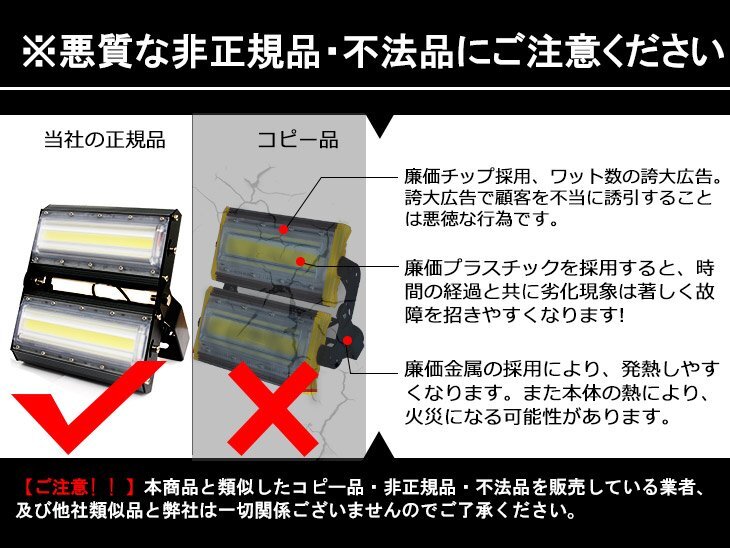 進化版 50W LED投光器 漸く登場! 50Wと省電力で、従来の700W相当の明るさです! IP67規格の防水仕様!照射角度は240度に達します!公園、運動、屋外や現場作業にも便利です!特に、夕暮れ時夜間作業にとても役立ちます! 虫が集まりにくいの も魅力です。 ◆高品質のCOBチップ採用: 照射角度は240度に達します。高輝度寿命が50000時間に達します。省エネな製品だ! ◆優れた放熱性: 優れた6063型アルミ材質を採用、熱伝道スピードは伝統投光器の2倍以上!ヒートシンクには溝があり、空気とタッチする面積が増大します。 ◆防爆耐震ガラス: 耐圧強度が高いの防爆ガラスを採用。安定丈夫な材質で、長時間に使えます。 ◆IP67ラベルの防水性能: 密封性に優れ、IP67相当の防塵防水性能を実現!場所を選ばず様々な用途の照明に使えます。 ◆照射角度調整可能: 回転支えを使えて、お好みに照射角度を調整できます。 ◆広い使用範囲: トンネル、掲示板、ガソリンスタンド、夜間作業、現場工事、駐車場、公園、運動場にも様々な場所で活躍します!公園、運動、屋外や現場作業にも便利です!特に、夕暮れ時夜間作業にとても役立ちます! 虫が集まりにくいの も魅力です。 【保証】 ◆当商品は12っヶ月保証となります。 ◆お届けから1週間以内にご連絡のあった不良品の保証対応の送料は当方が負担いたします。 ◆保証期間内の不良品ですが、交換のみ対応しております。往復送料はお客様負担となります。在庫がない時だけ返金しますので、ご了承ください。 |