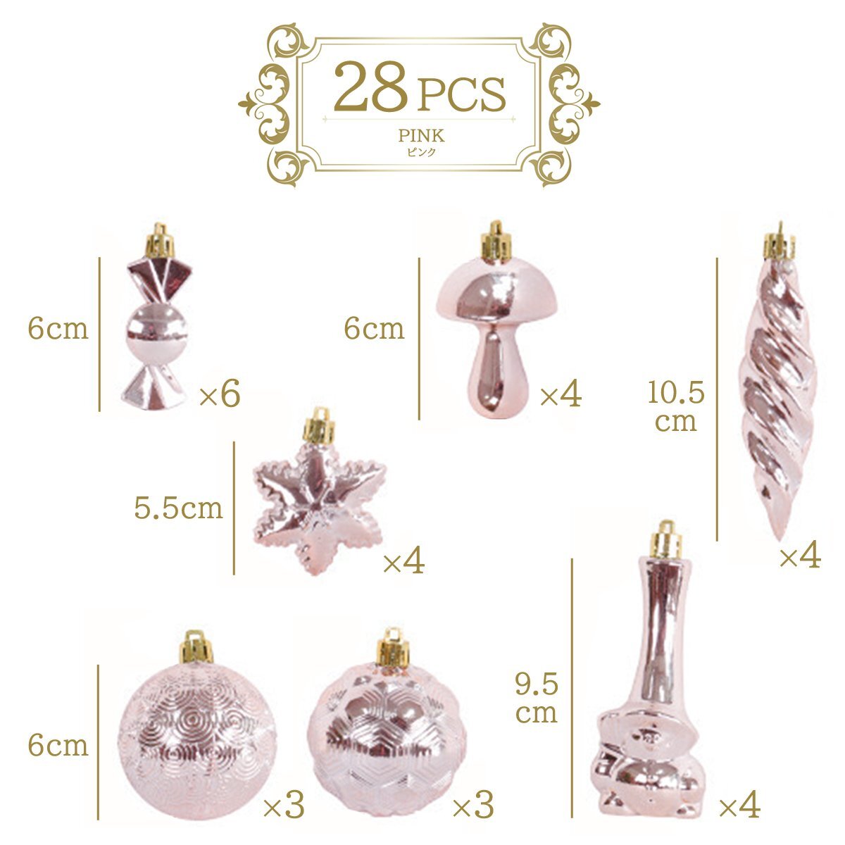 クリスマスツリーオーナメント アソート 28個セット ピンク ラメ無し ボール スター 装飾 Xmas Christmas デコレーション インテリア