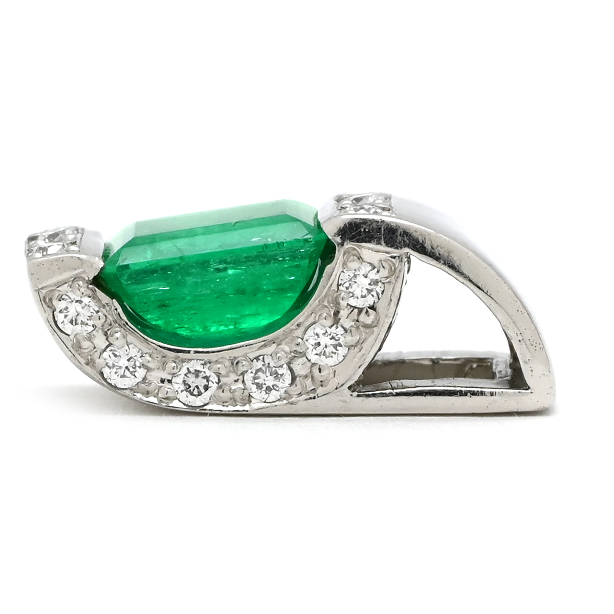 ペンダントトップ エメラルド ダイヤ Pt900 グリーン 緑 ネックレストップ エメラルドカット スクエア プラチナム 中古