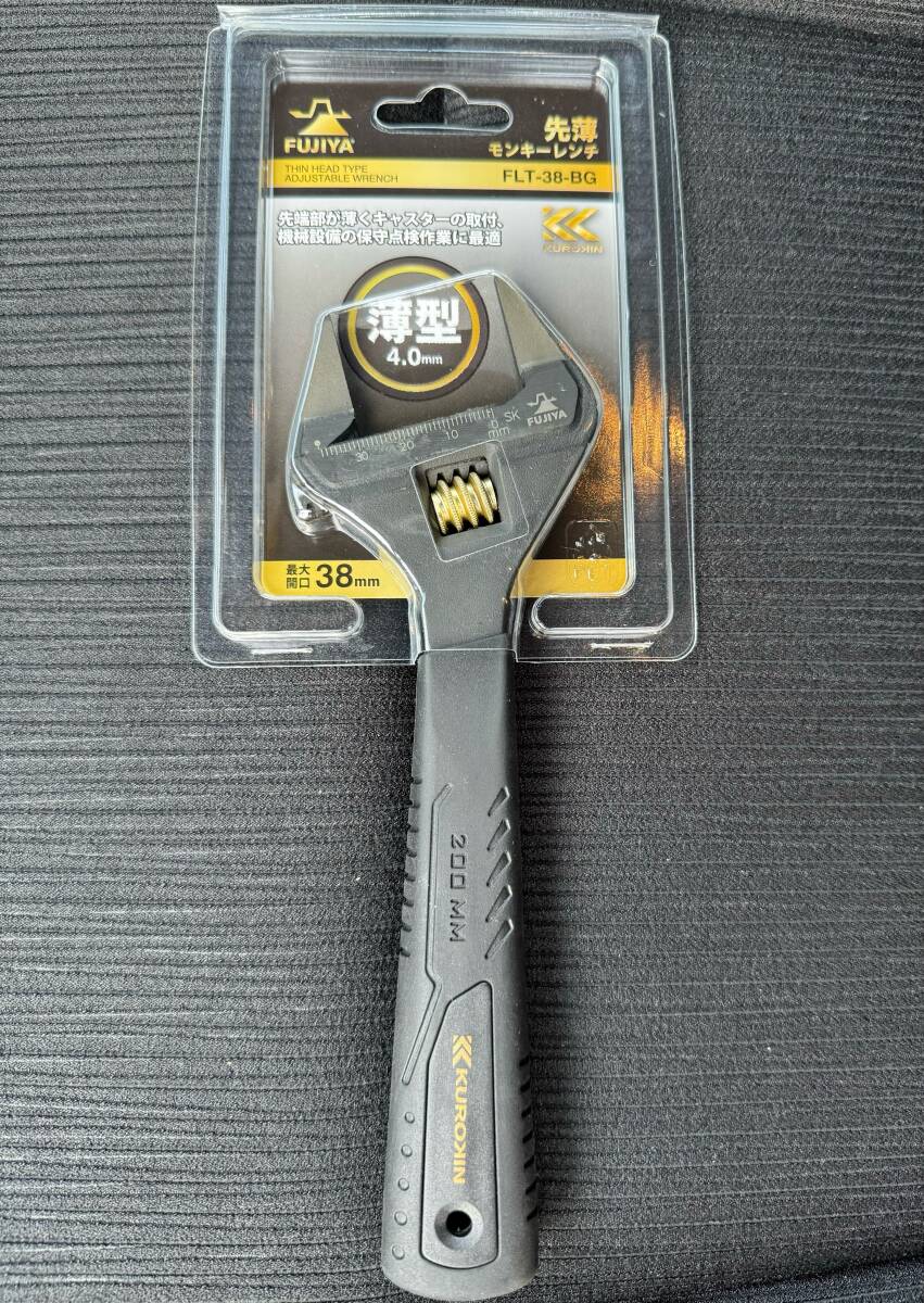 フジ矢・KUROKIN/FLT-38-BG /先薄モンキーグリップ付き(黒金) <用途> 家具の組み立てやキャスター取り付け、ダブルナットの取り付けなど狭い隙間部分のナットを回す事が可能です。 <特長> 先端部分の厚みが4.0mmと非常に薄くなっています。 強く握っても手が痛くならないグリップ付 薄型、軽量で狭い場所で威力を発揮します。 上質の黒色×金色仕様。 ◆詳細はメーカーホームページをご参照ください。 ◆ノークレーム、ノーリターンでお願い致します。 ◆神経質な方の入札はご遠慮下さい ※パッケージに小傷や割れがあります ◆落札後24時間以内の取引開始、2日以内にご入金出来る方のみの入札をお願いします。