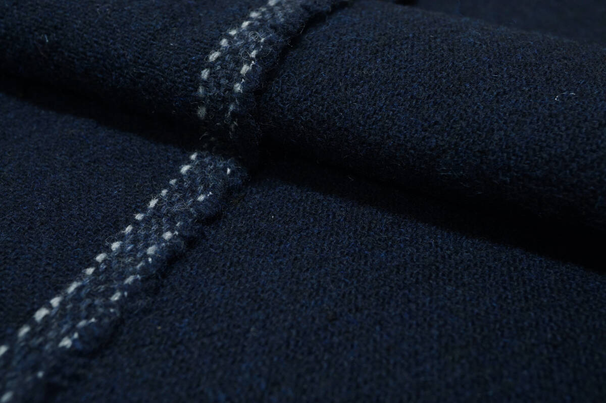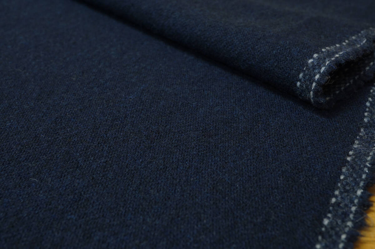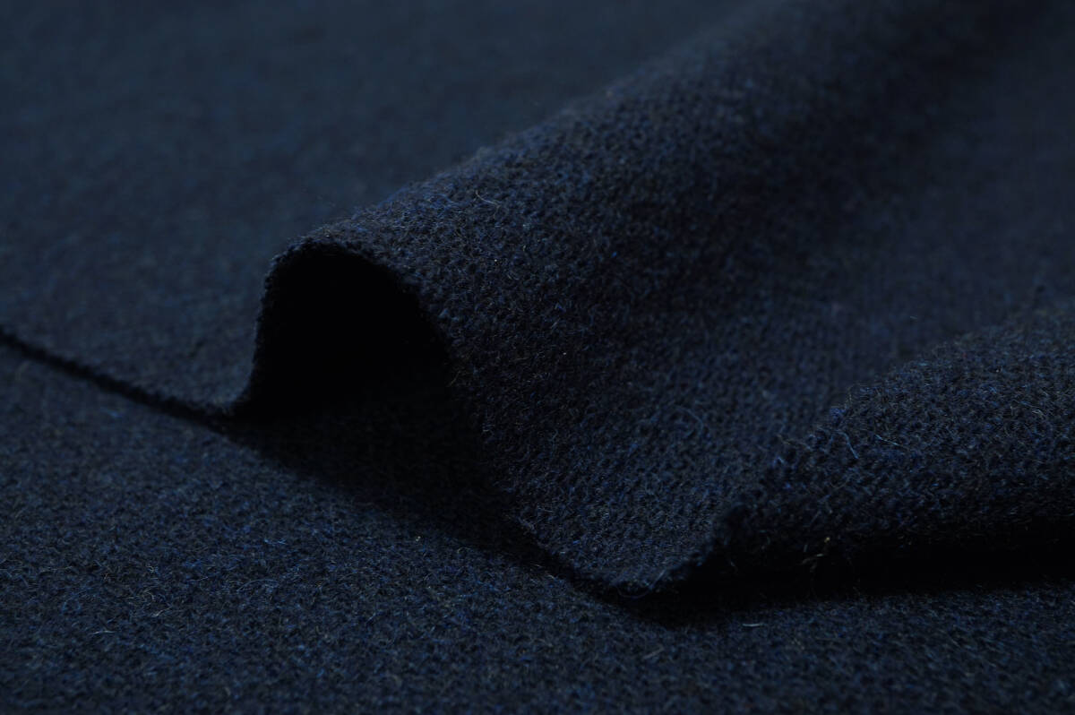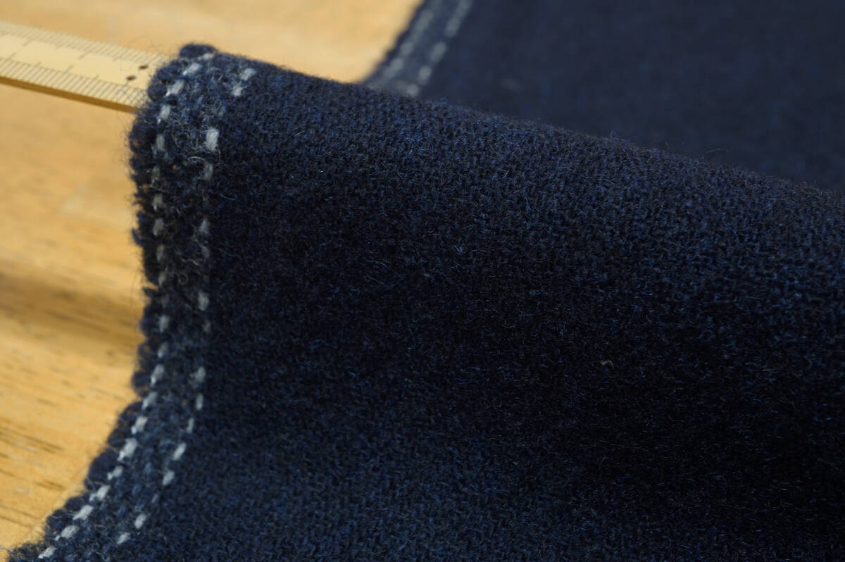 ウール・ポリエステル系(混率不明)、厚さは中厚地、毛羽感とほんの少しチクチク感もあり、ハリコシや重みなどは無く、軽めで程良いソフトな風合いのウール生地でございます。