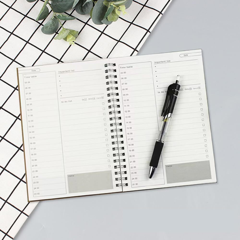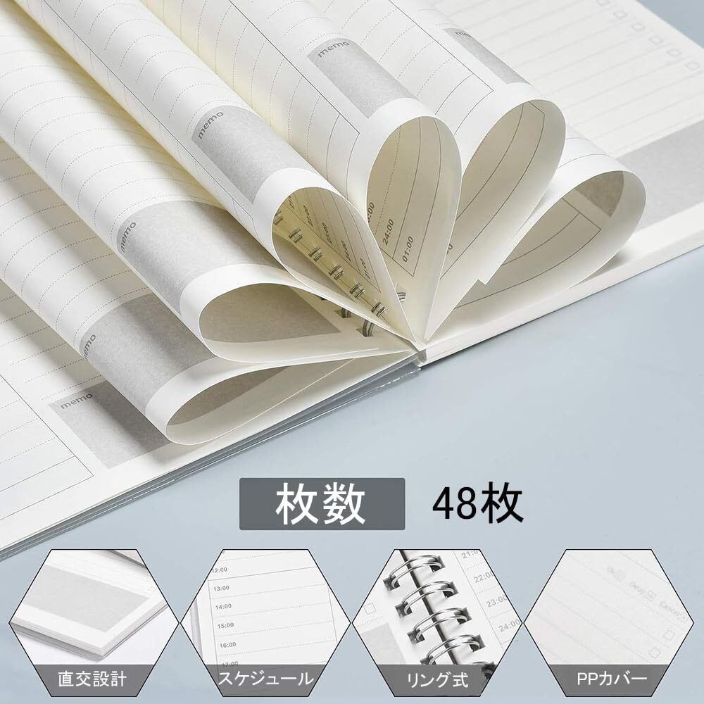 【リング型デザイン】リングノートは360度回転可能で、片面を開いて1日のスケジュールをバッグに入れることができます。必要な時にすぐにスケジュールを確認できます。