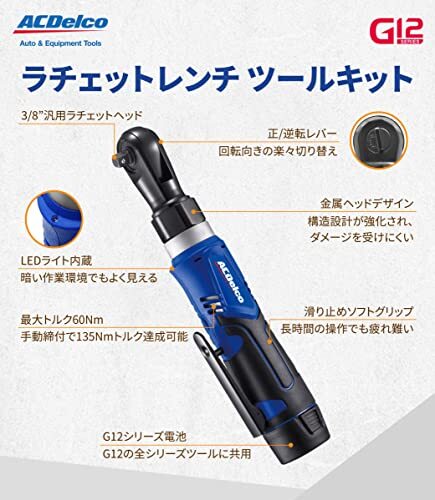 ACDelco G12 10.8V 充電式 ラチェットレンチ 3/8”(9.53mm) 最大トルク45ft-lbs(60Nm) R