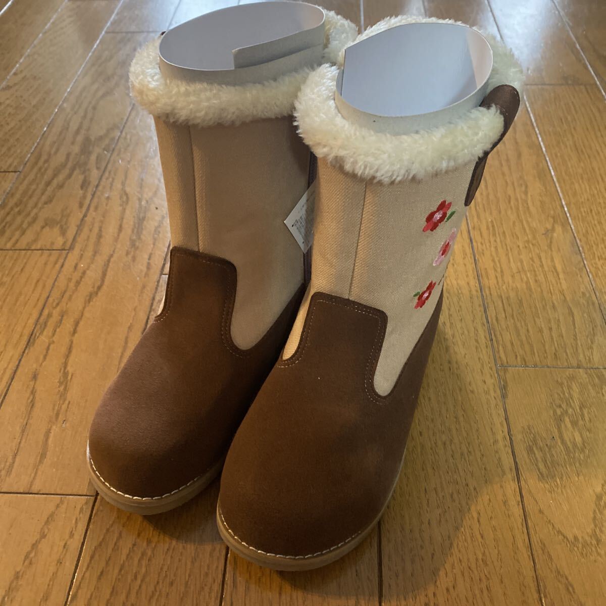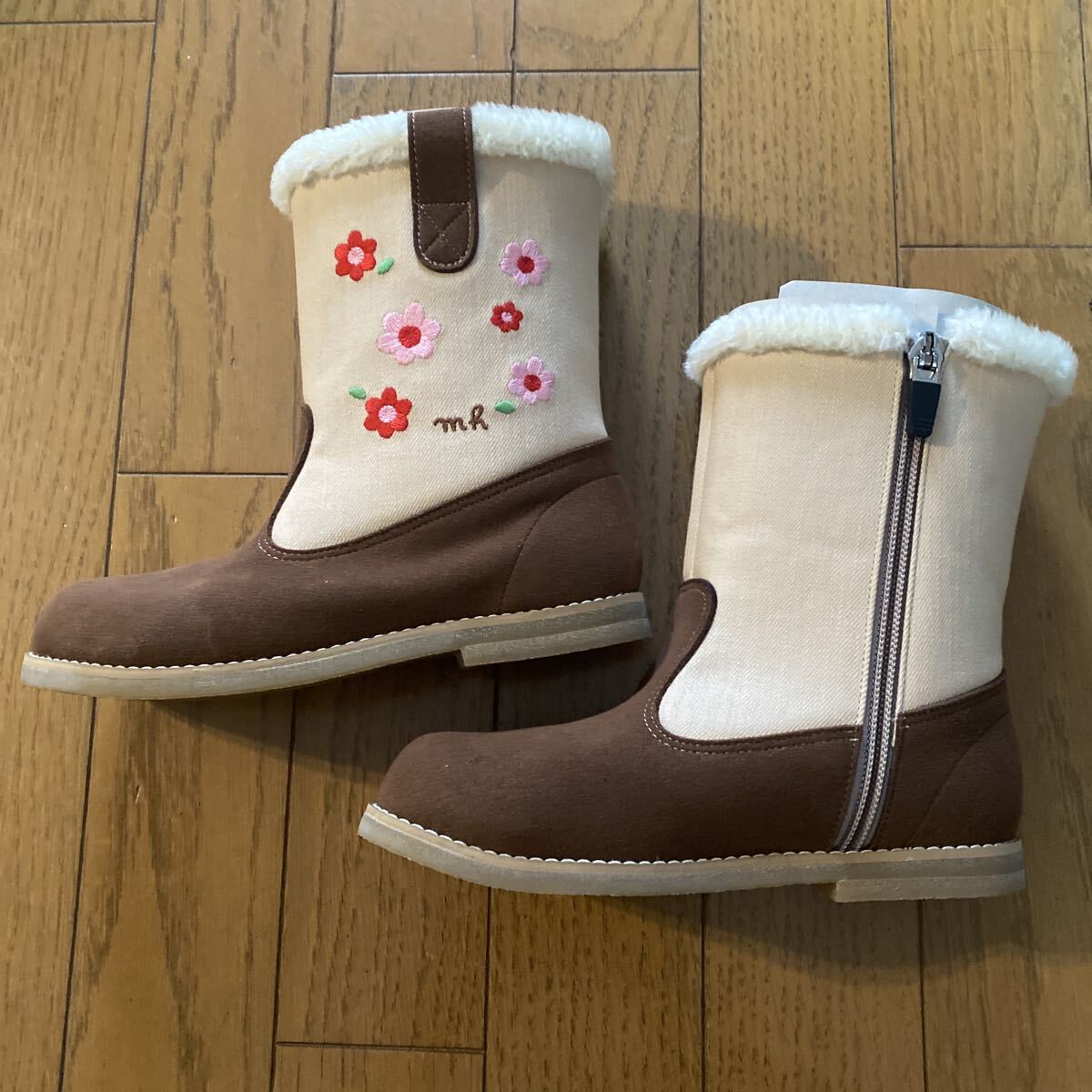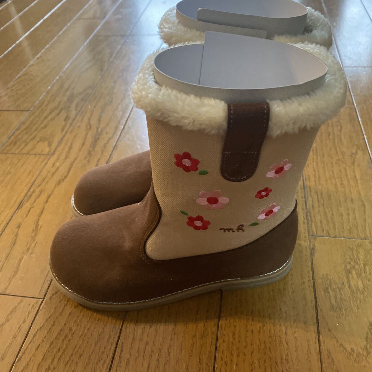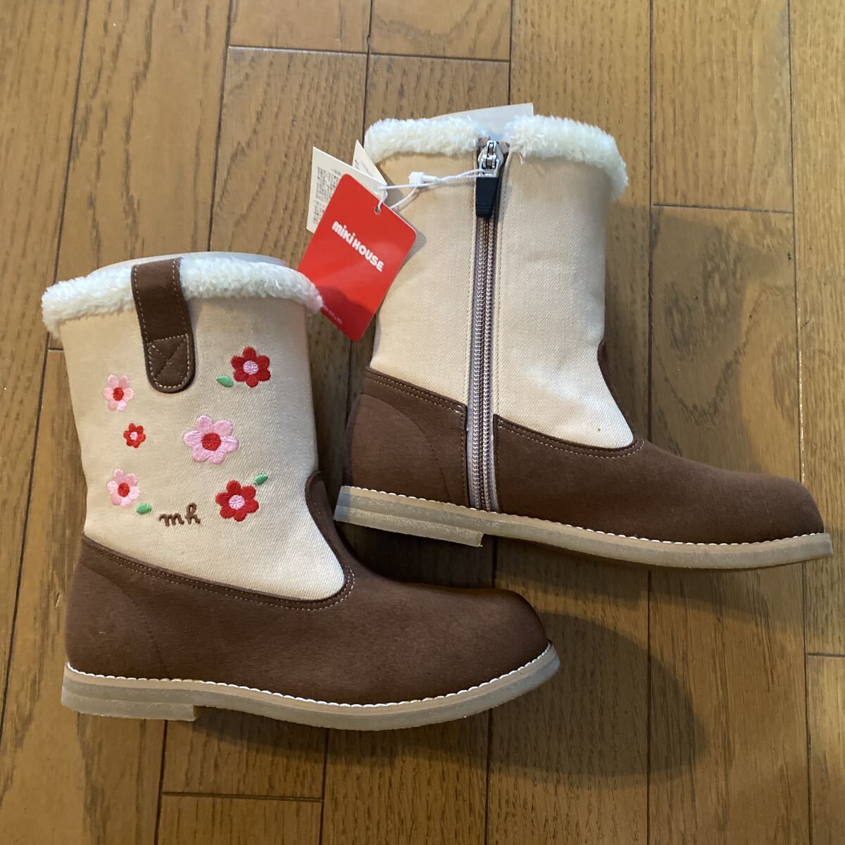 SALE 未使用 ミキハウス ブーツ 19cm ベージュ ムートンブーツ スノーブーツ ブラウン キッズカントリーブーツ ボア