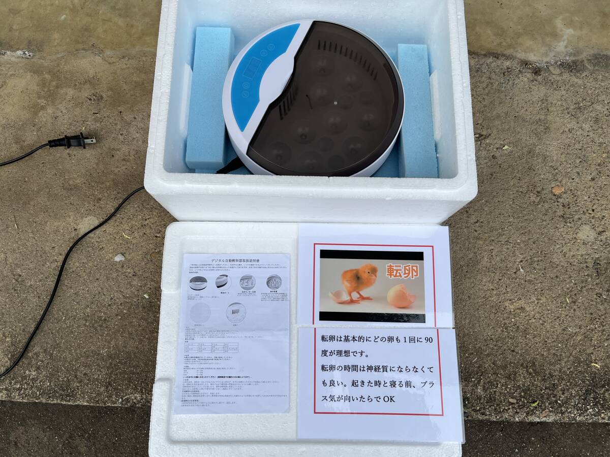 デジタル孵卵器です。鶏卵サイズに対応しており温度管理機能が付いていますが転卵は手動です。