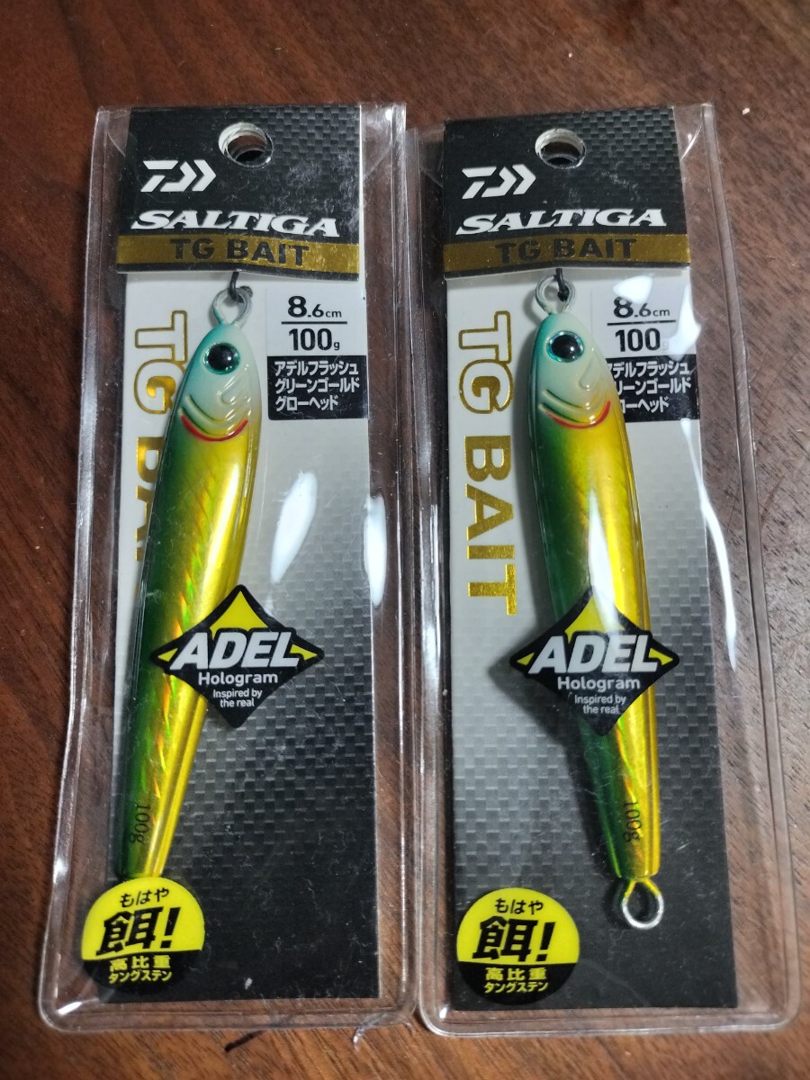 新品未使用 ダイワ ソルティガ TGベイト 100g 2本セットになります。カラーは写真で判断してください。