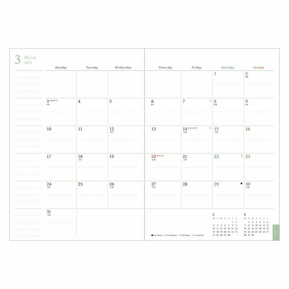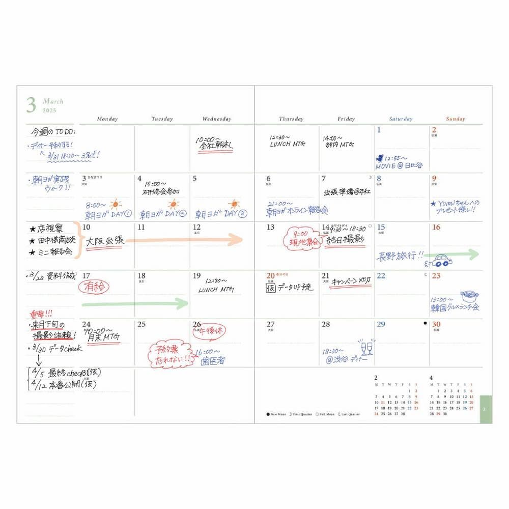 薄くて持ち運びしやすく、月ごとのオールカラー仕様のページが人気の手帳。