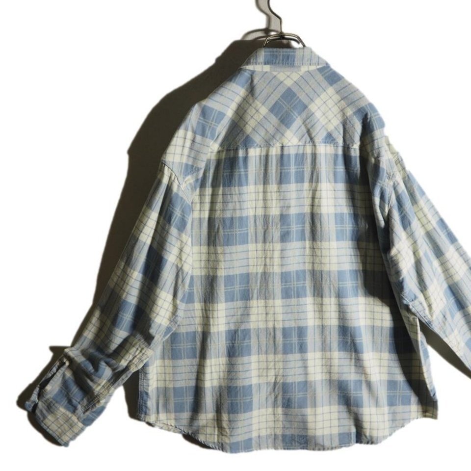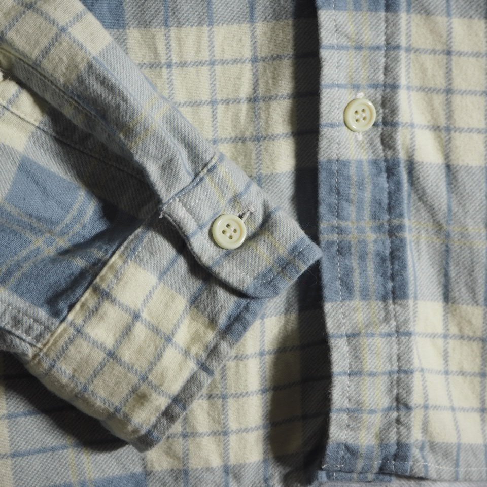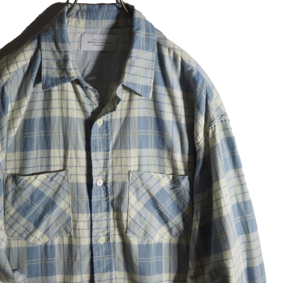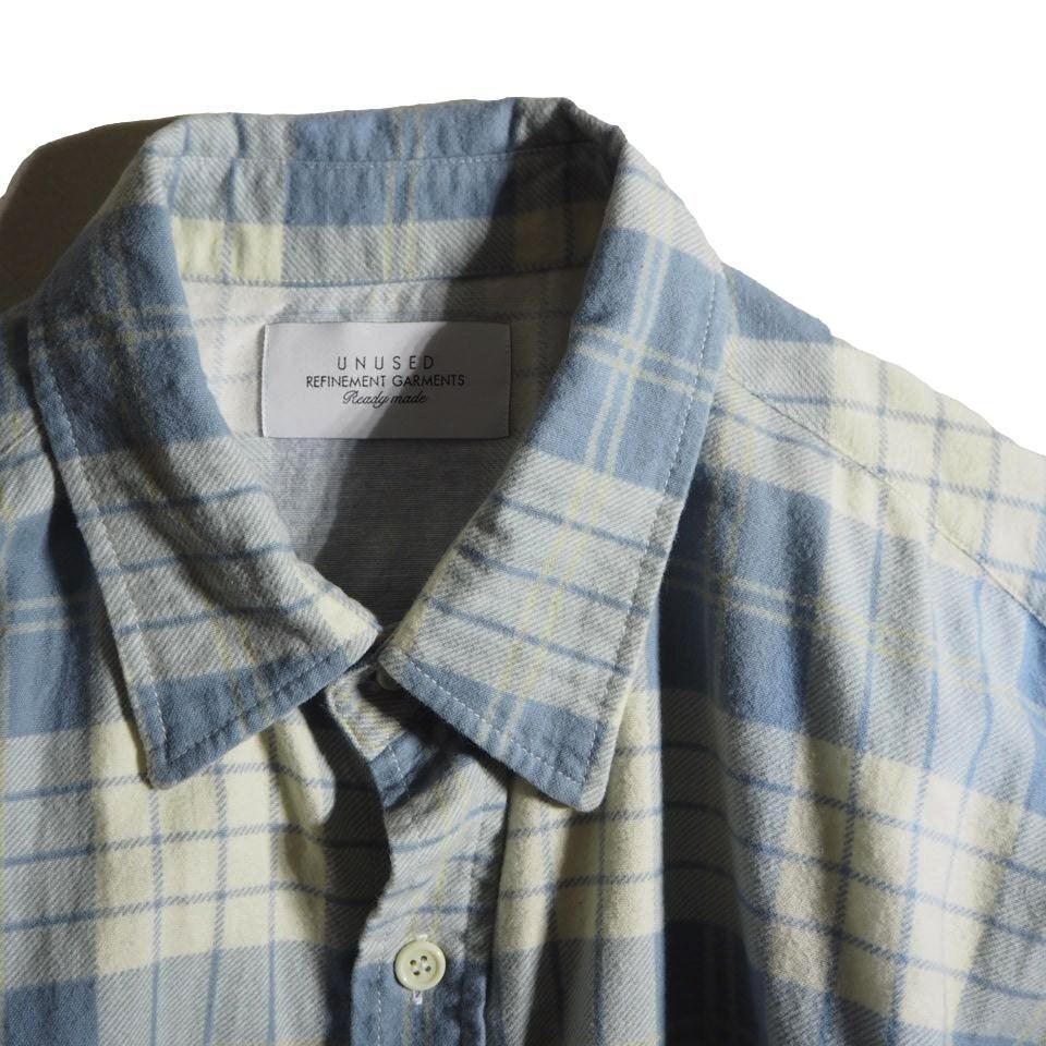 R4615f33 ■UNUSED アンユーズド■ 23AW US2384 コットン パジャマシャツ アイボリー ブルー 3 / 長袖シャツ ブルーチェック 春~秋