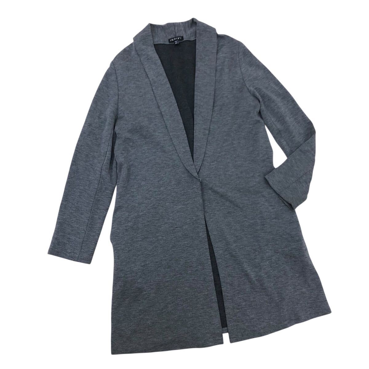 12Nm344-49 INDIVI インディヴィ ショールカラー ロング ジャケット カーディガン リヨセル カットソー 上着 羽織り アウター グレー 38