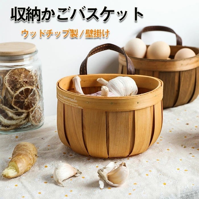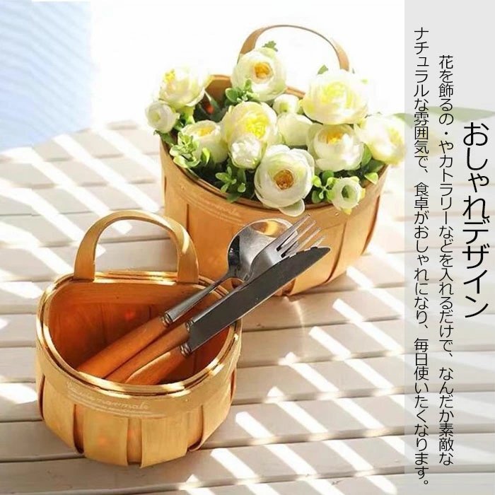 収納バスケット 天然素材 浅型ボックス 手編み 収納ケース カトラリーケース ウッドチップ製 キッチン収納☆2色/2サイズ選択/1点