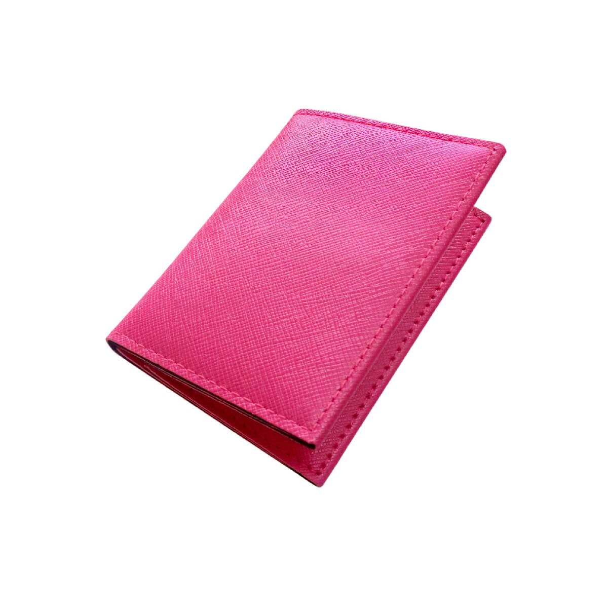 【CT1907010】送料無料 カードケース ショッキングピンク(サフィアーノ) 二つ折り 定期入れ 免許証入れ カード入れ 身分証 社員証 IDカード