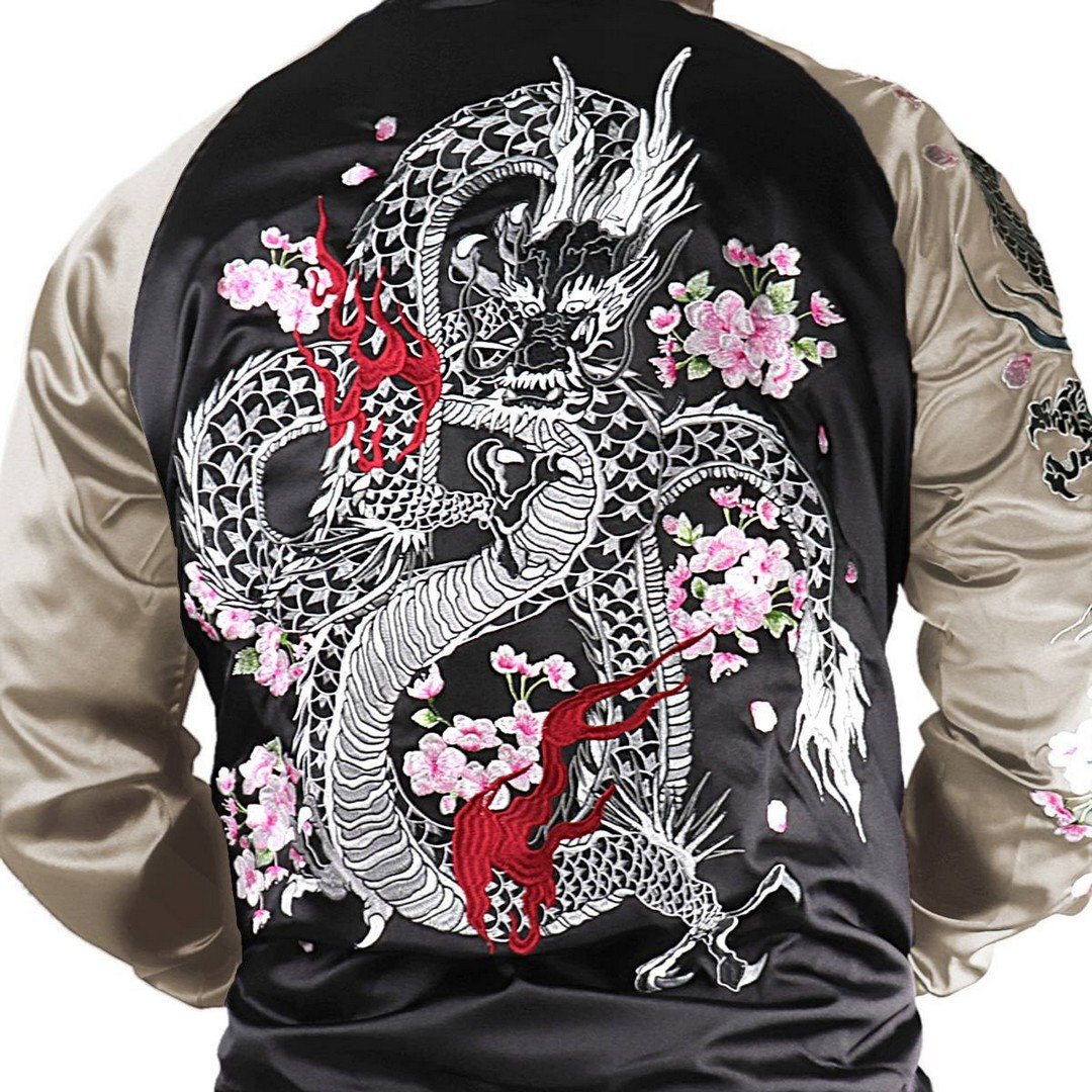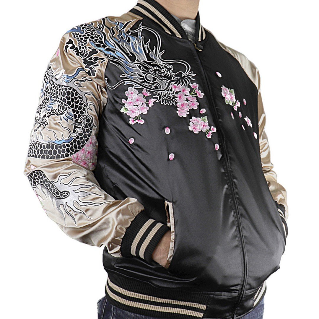 【CTskjnLGL】送料無料 スカジャン ゴールドベージュ サイズ:L 龍 桜吹雪