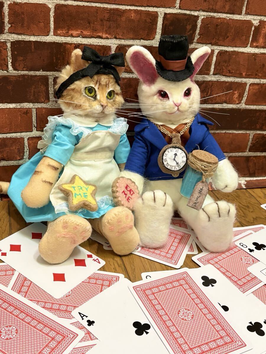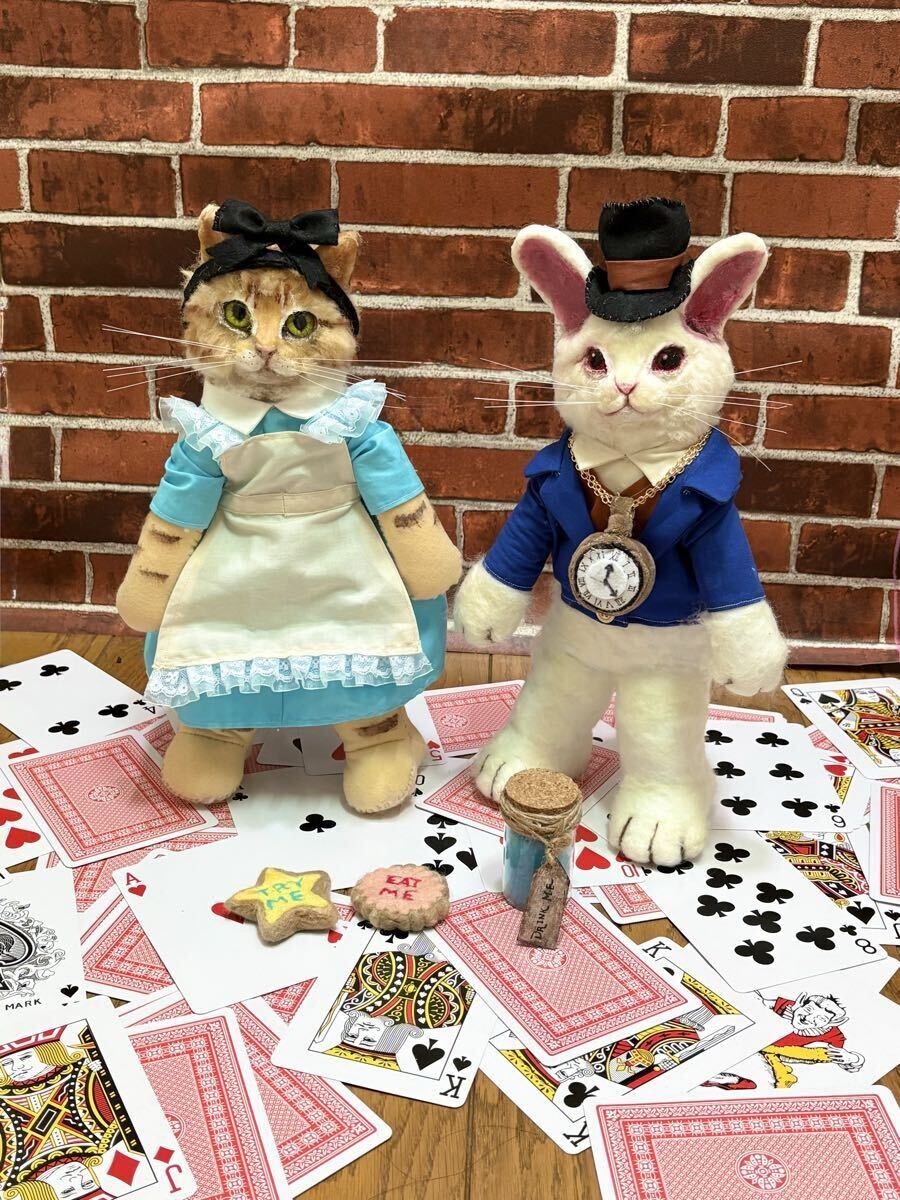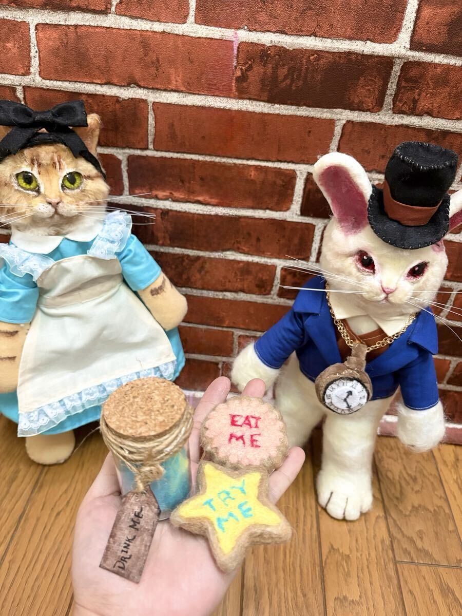 顔の部分は樹脂粘土と羊毛フェルトで製作し、