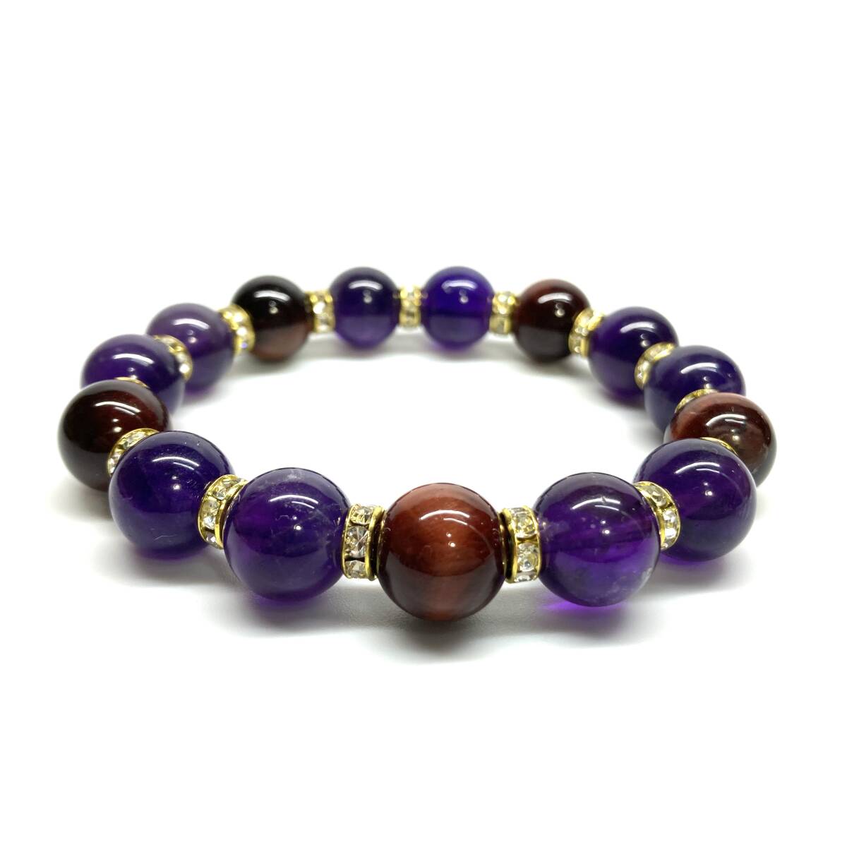 レッドタイガーアイ&アメジスト パワーストーン ブレスレット 天然石ブレス (ゴールド) 12mm 金運 仕事運 メンズ・レディース 男性 女性