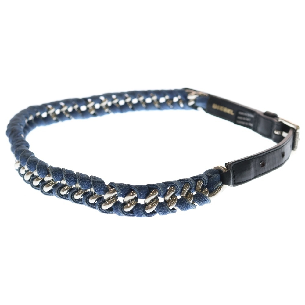 DIESEL ディーゼル メッシュ デニム レザー ベルト ブルー/ブラック レディース