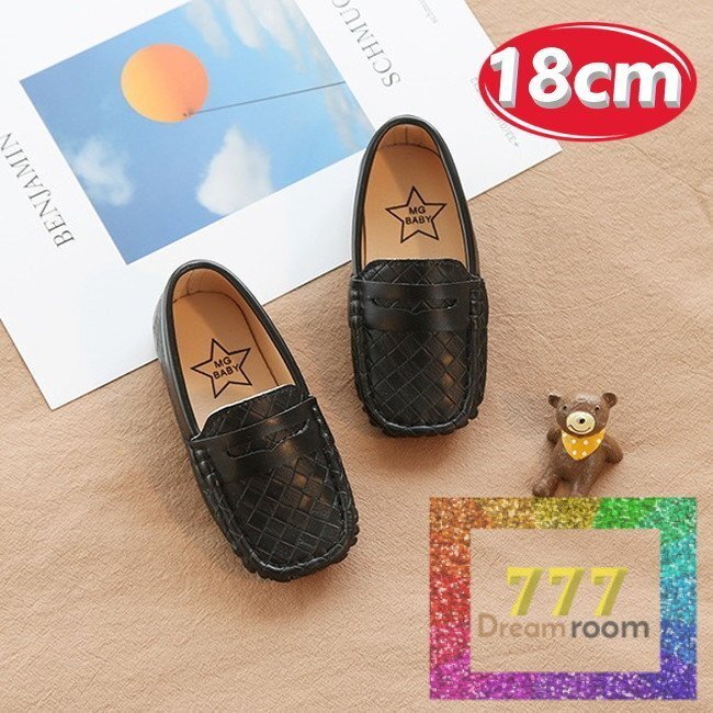1スタ☆kids イントレチャート ローファー シューズ 【ブラック 18cm】靴 フォーマル 編み込み 合皮 入学式 レザー