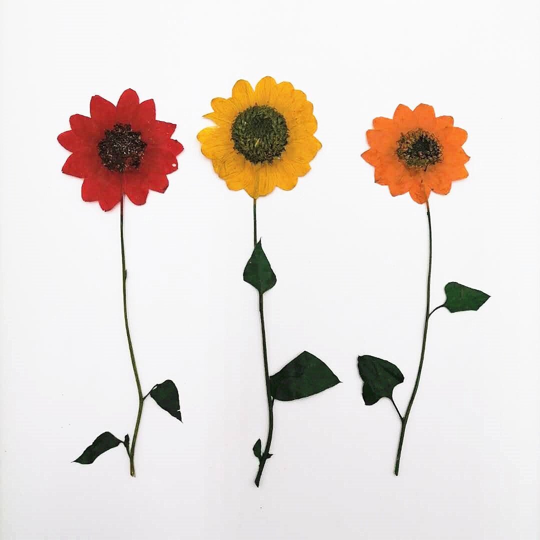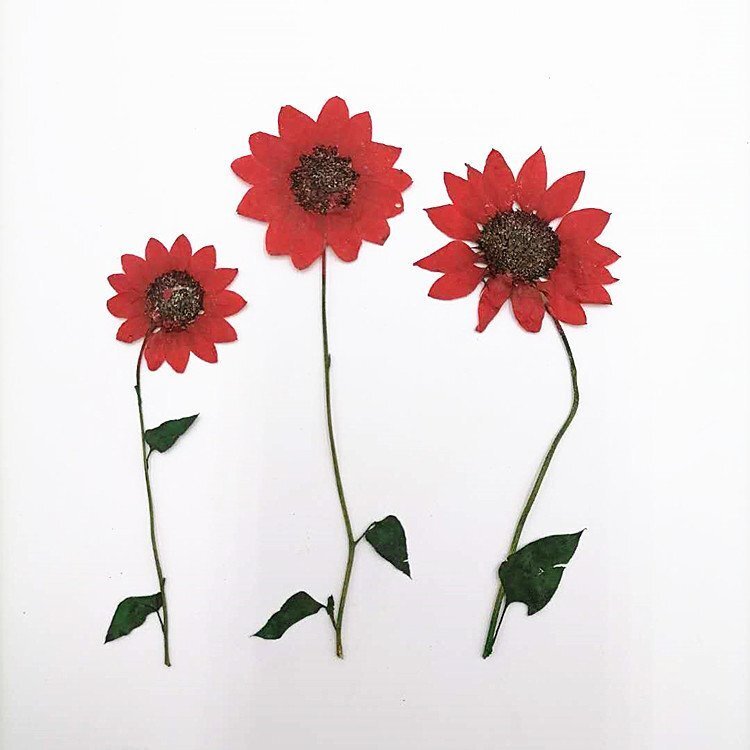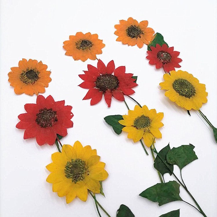 1スタ☆送料無料☆本物 押し花素材 ハンドメイド 花材 DR101O 押し花 ミニヒマワリ レッド染