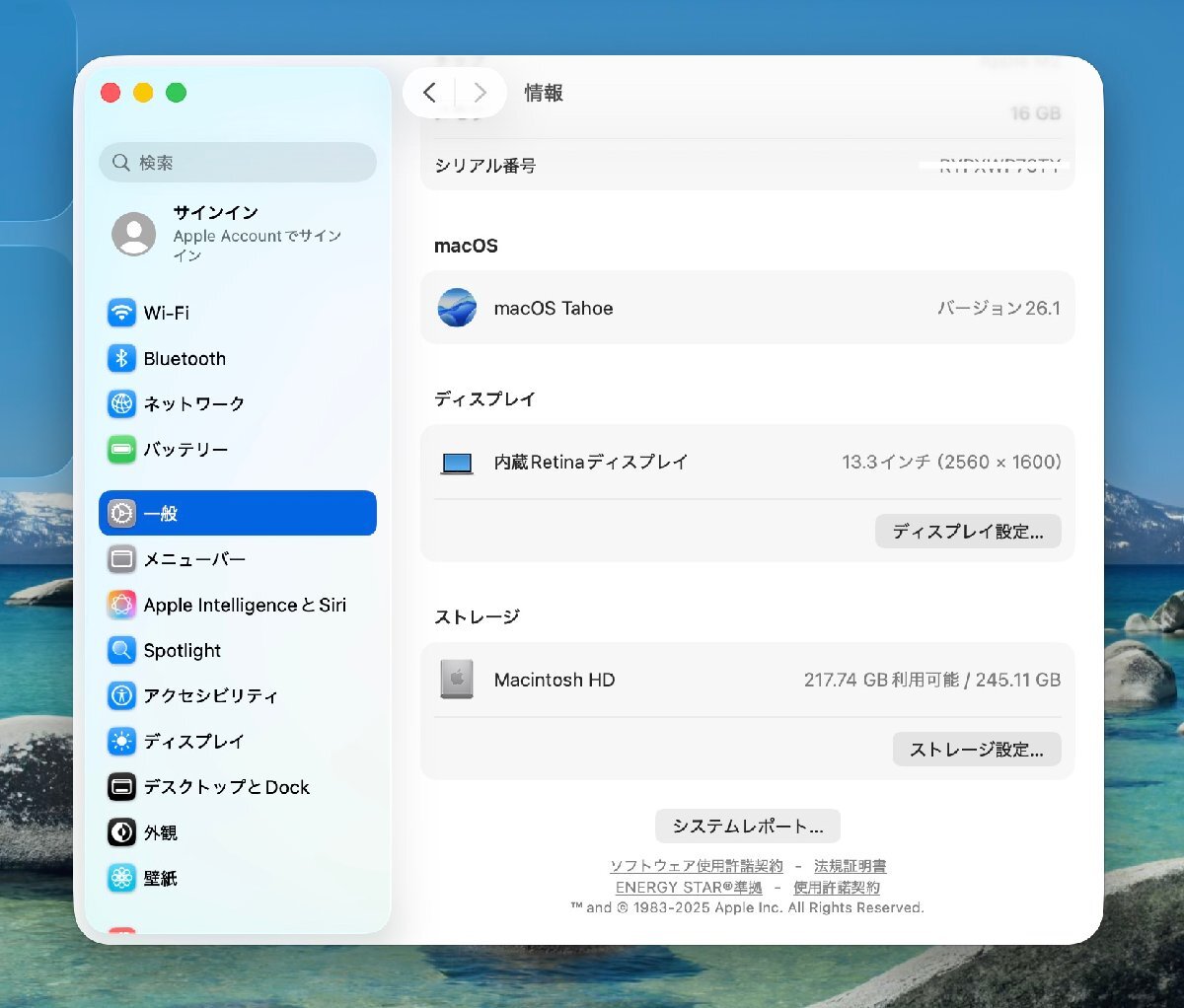 ストレージ: AppleSSD 256G