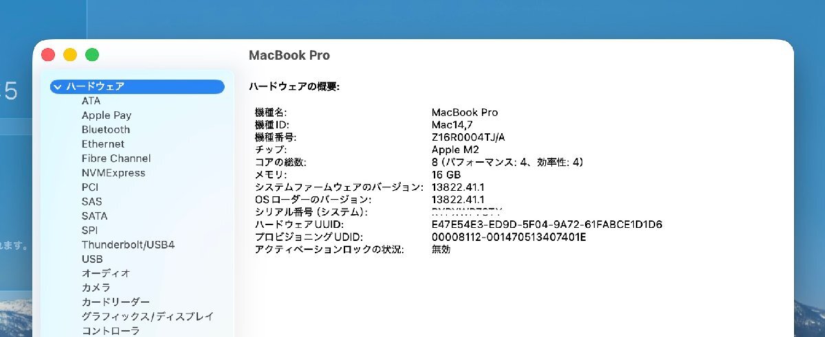 Apple MacBook Pro スペースグレイ A2338 2022 Apple M2/16G/SSD 256G/JIS-KEY