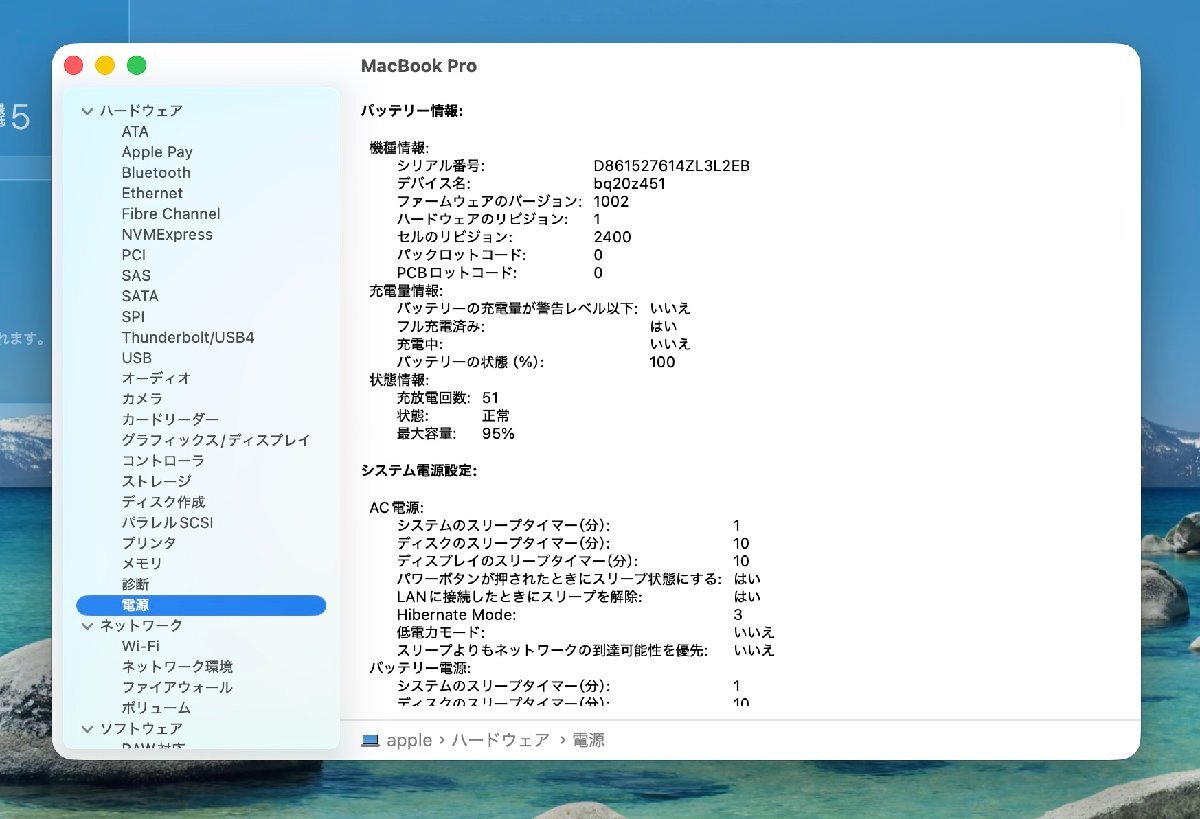 バッテリー: 正常 (充放電回数 51 回) (バッテリーの詳細情報は写真をご覧下さい。)