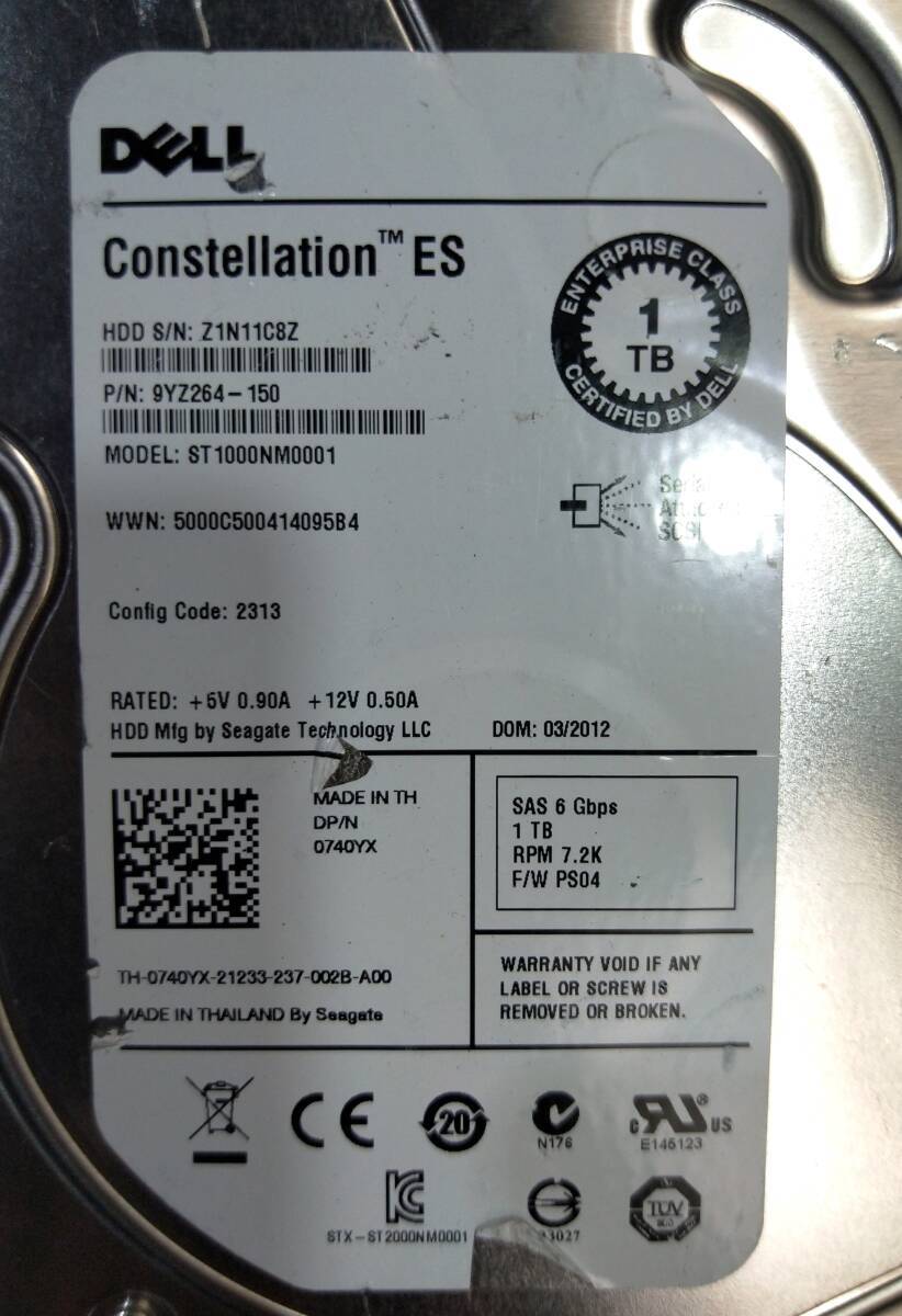 【中古パーツ】 3.5インチ DELL ST1000NM001 15K SAS 1TB HDD 正常品 1台■ SAS 2164