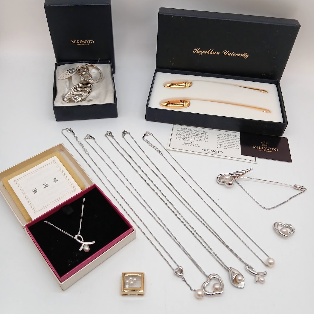 【S-21】TASAKI/MIKIMOTO パールアクセサリーおまとめ 田崎/御木本真珠 S/月マーク刻印 ネックレス ブローチ ペンダントトップ スプーン チャーム 箱 保証書付き 現状品 | |||